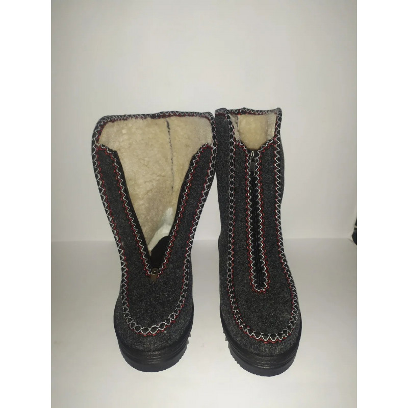 Бурки суконні зимові на липучці. Темно-сірі чуні для широкої ноги та проблемних ніг. Розміри 38-42 (арт. 4943)