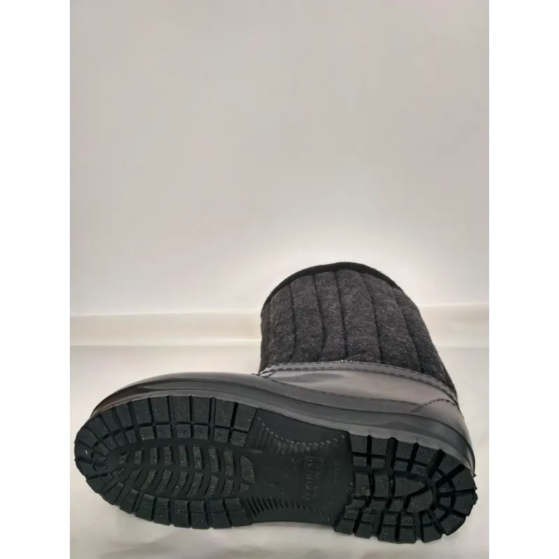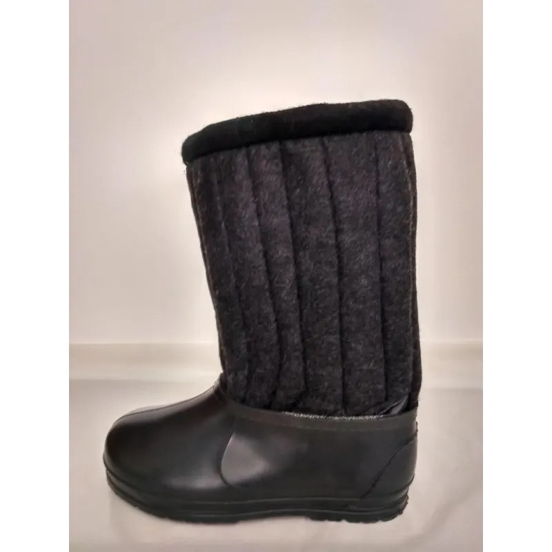 Особливістю цих бурок є наявність знімних гумових галош, які надійно захищають повстяне взуття від вологи, снігу та бруду. Завдяки цьому ви можете носити бурки не лише вдома чи на сухому снігу, а й у слякотну погоду, на мокрих доріжках та під час відлиги. Чорний колір робить взуття універсальним і практичним — воно не маркується та чудово поєднується з будь-яким зимовим одягом.