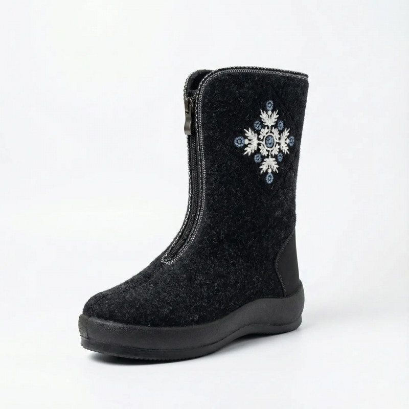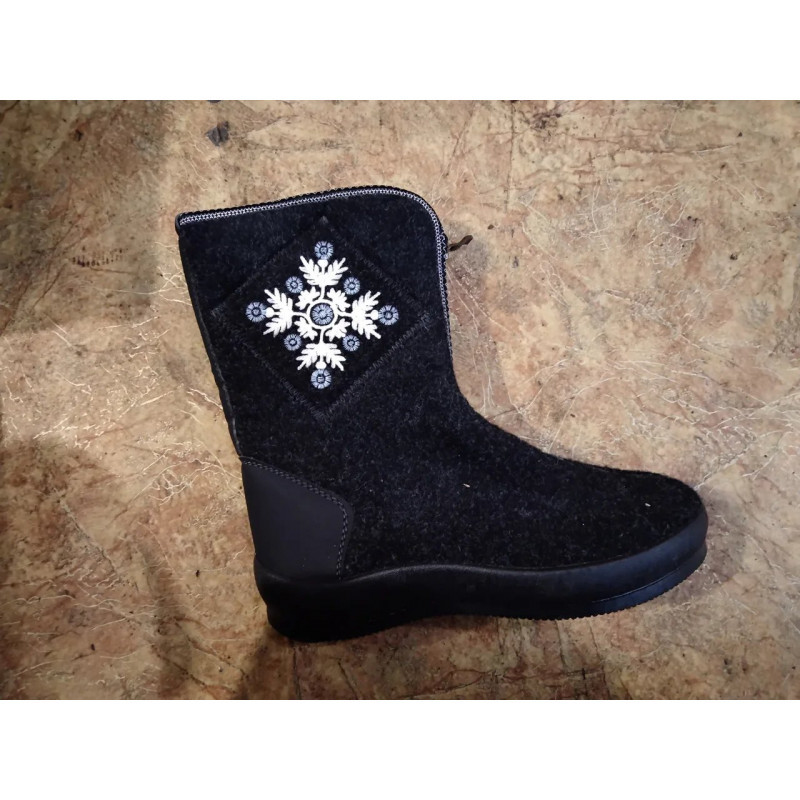 Теги: жіночі бурки, зимове взуття, повстяні чуні, чорне взуття, вишивка, Сніжинка, зимова мода