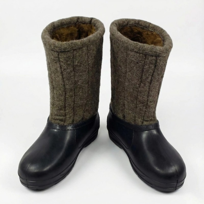 Унікальна конструкція поєднує натуральне повстяне взуття з гумовими калошами. Повсть зберігає тепло навіть при -40°C, а калоші захищають від вологи, снігу та бруду. Ви отримуєте максимальний комфорт без компромісів між теплом та водонепроникністю.