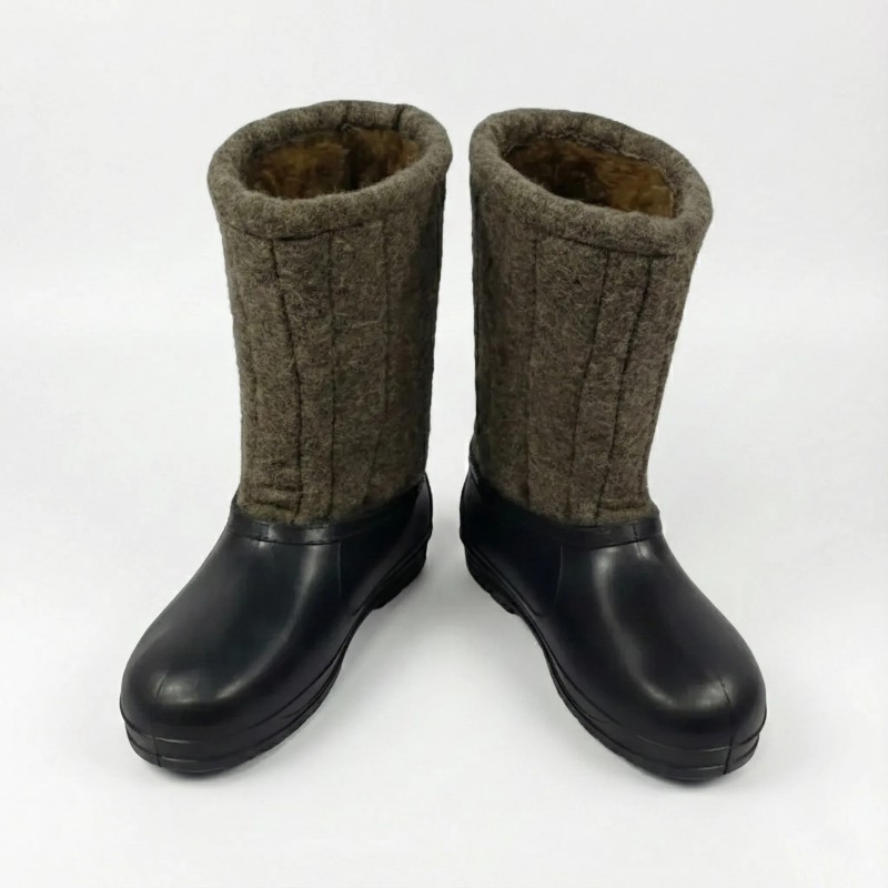 Натуральна овеча вовна створює природну термоізоляцію, зберігаючи тепло навіть при -30°C. Гумові галоші захищають від вологи, снігу та бруду, а дихаючі властивості вовни запобігають перегріву та потовиділенню. Ви отримуєте комфорт протягом усього дня.