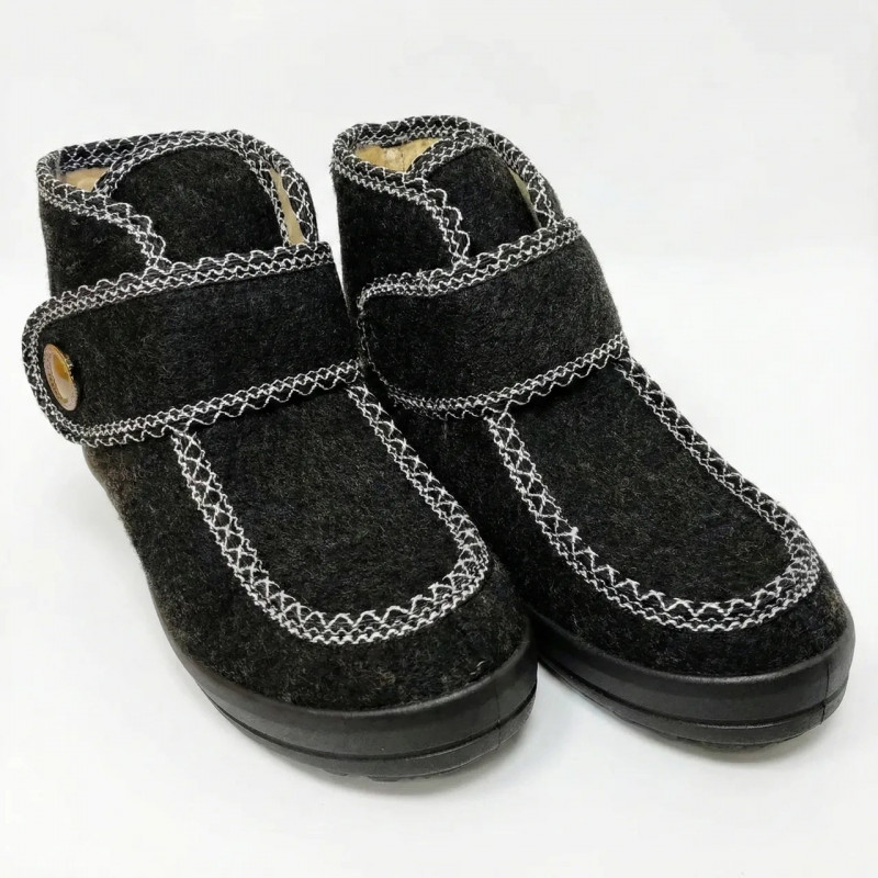 Шукаєте стильні та зручні бурки для зимового сезону? Наші чорні зимові чуні для широкої ноги - ідеальний вибір. Вони виготовлені з високоякісної суконної тканини та мають зручну липучку.
