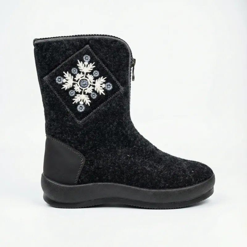 Шикарні жіночі бурки високі зимові повстяні, виготовлені з високоякісних матеріалів. Чорні панчохи з вишивкою Сніжинка на блискавці додають їм особливої елегантності. Розміри 37-41 40.