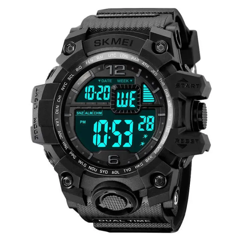 SKMEI 2245BKWT сочетает стиль и функциональность: оборудован таймером, секундомером, мировым временем, несколькими будильниками, функцией сна и другими полезными режимами. Высокий уровень водозащиты позволяет не снимать часы во время дождя или занятий спортом. Это идеальный вариант для туризма, тренировок и повседневной носки.