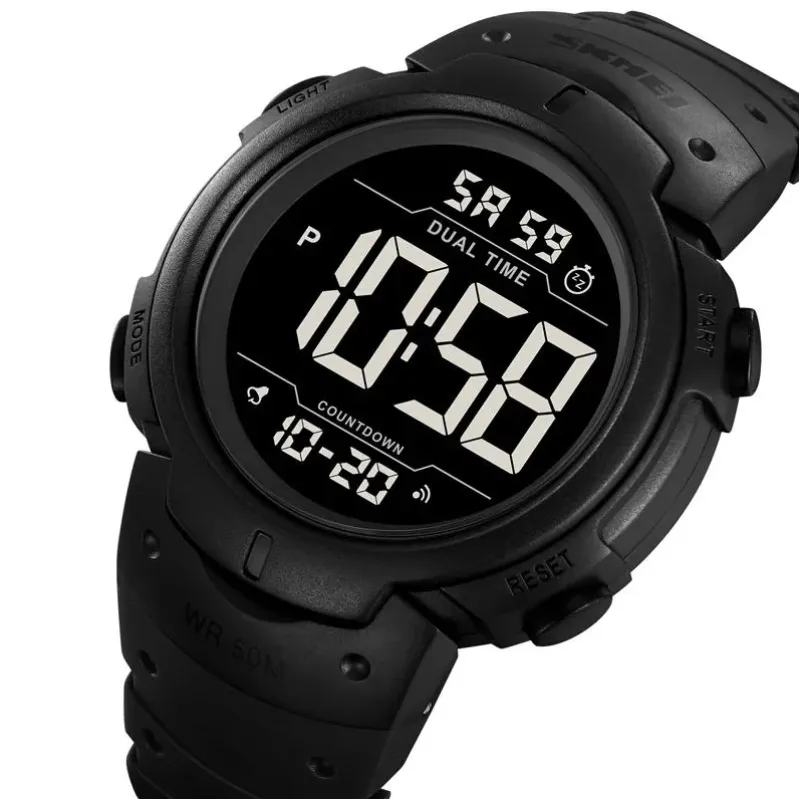 Часы оснащены всеми необходимыми для ежедневного использования — от таймера обратного отсчета до функции двойного времени и будильника с повтором. SKMEI 2304BKBK подойдет как для активного отдыха, так и для ежедневного ношения в городе. Прочный корпус, комфортный ремешок и водозащита до 50 метров гарантируют долговечность даже при интенсивном использовании.