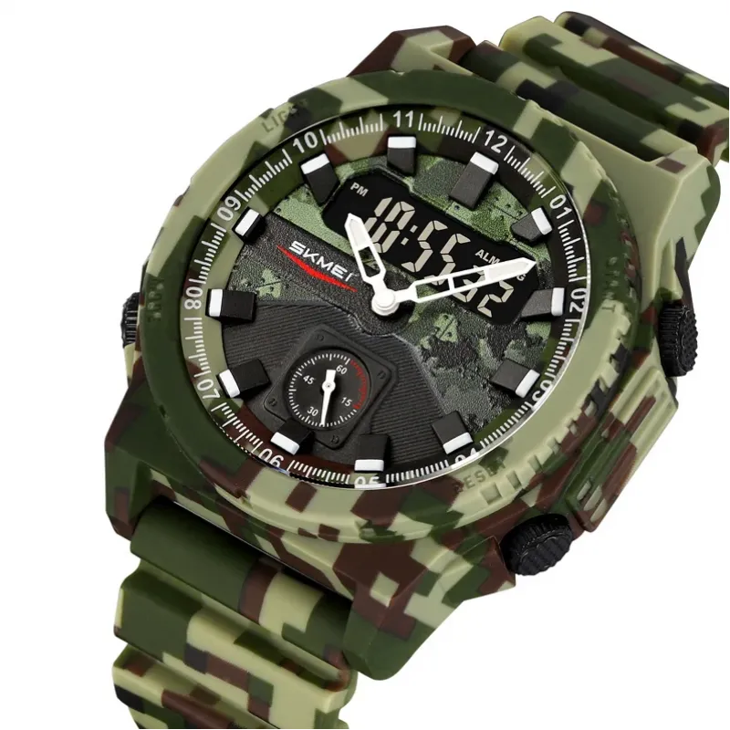 Часы SKMEI 2355CMGN — это идеальное сочетание военного стиля, функциональности и надежности. Его уникальный камуфляжный дизайн не только привлекает внимание, но и отлично подходит для активного образа жизни. Аналогово-цифровой дисплей позволяет удобно отслеживать время в любой момент, а яркая подсветка обеспечивает отличную видимость даже в темноте.