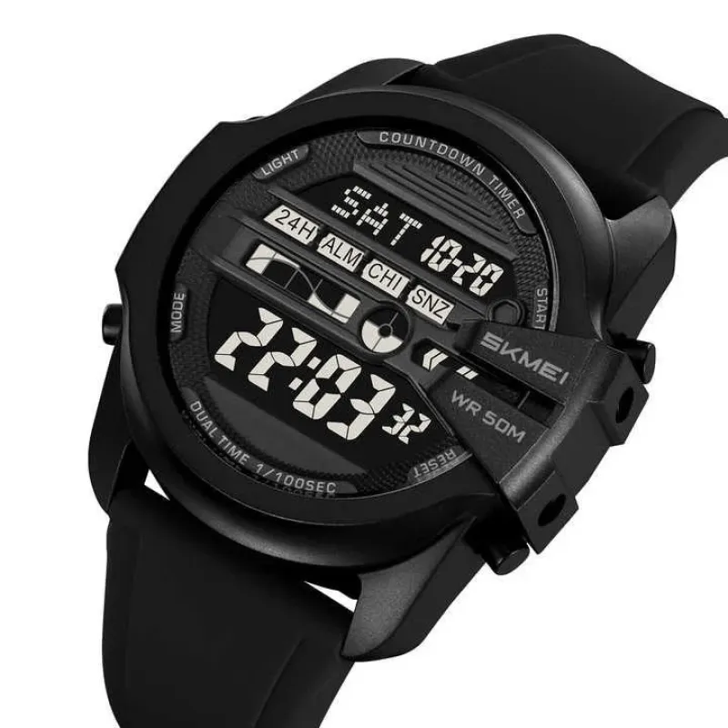 Модель оборудована полным набором функций для активного образа жизни: двойное время, будильник, секундомер, таймер, дата, день недели и подсветка. Уровень водозащиты 50 м позволяет не беспокоиться во время занятий спортом, уличной активности или под дождем. SKMEI 2442BK – это стильная комбинация надежности, техничности и комфорта в одном корпусе.