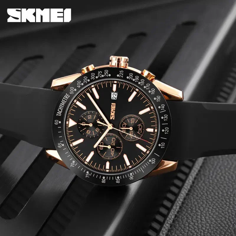 Часы SKMEI 9253PRGBK — это сочетание утонченного стиля и функционального совершенства. Его черный циферблат с золотистыми акцентами выглядит элегантно и современно, а корпус с глянцевым покрытием в розовом золоте придает образу статусности. Три вспомогательных мини-циферблата в сочетании с тахиметрической шкалой подчеркивают хронографический характер модели, а окошко даты на 3 часа обеспечивает дополнительное удобство.