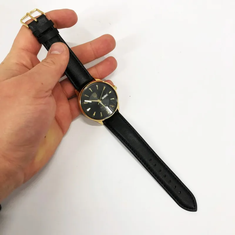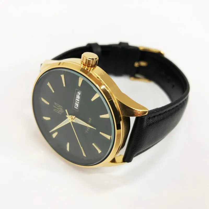 Часы SKMEI 5702/2075GDBK — это изысканный аксессуар с элегантным патриотическим акцентом. Его черный циферблат украшен золотым трезубцем и надписью "Украина", подчеркивающей национальный характер модели. Золотистый корпус с тонким профилем в сочетании с классическим кожаным ремешком создает солидный образ, подходящий как к деловому стилю, так и к торжественным событиям.