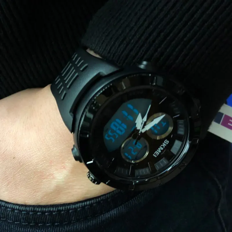 SKMEI 2014BKWT станет надежным спутником для активного образа жизни. Благодаря крепкому корпусу и водонепроницаемости до 50 метров, часы не боятся дождя или брызг. Модель оснащена всеми необходимыми функциями: будильник, секундомер, подсветка и двойное время, что делает ее идеальным выбором для спорта, путешествий или ежедневной носки.