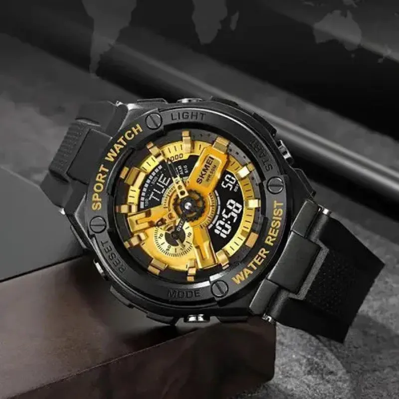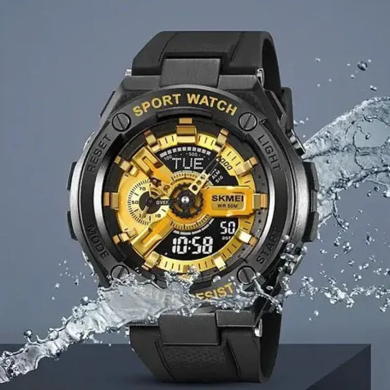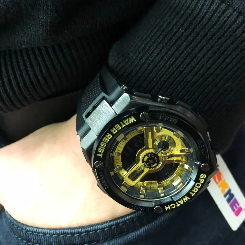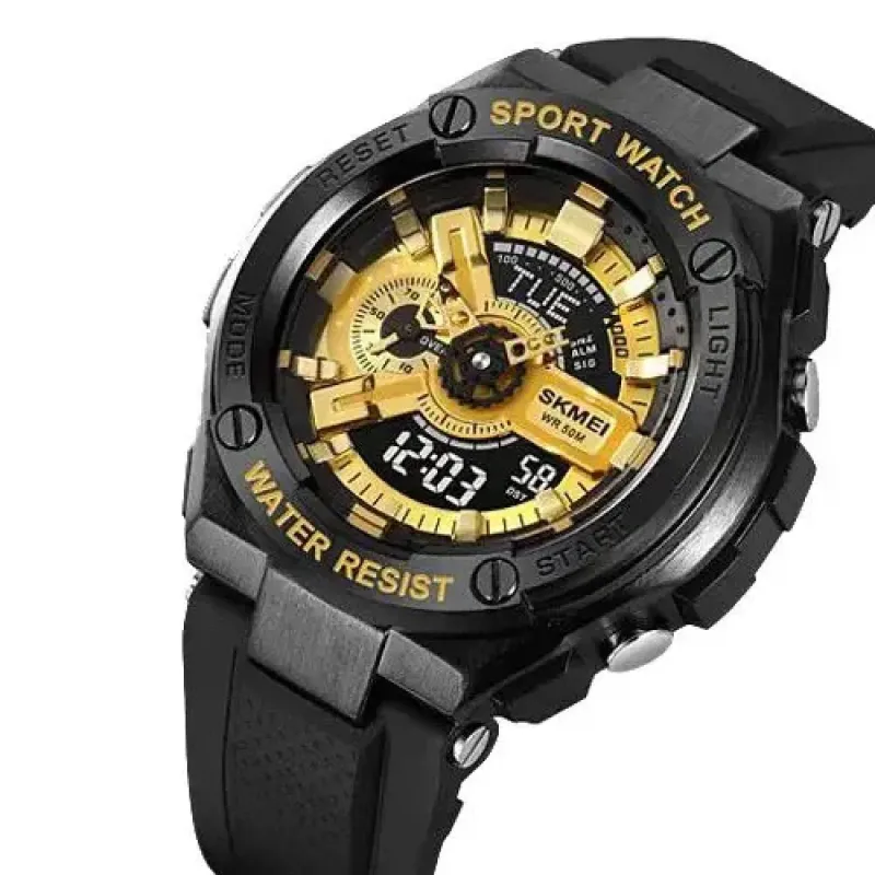 Часы SKMEI 2101BKGD — это яркий акцент в вашем стиле, сочетающий смелый золотой циферблат с черным корпусом. Модель выполнена в спортивном дизайне с комбинированным типом индикации, что позволяет одновременно использовать стрелки и цифровой дисплей. Такие часы станут не только практичным аксессуаром, но и выразительной деталью образа.