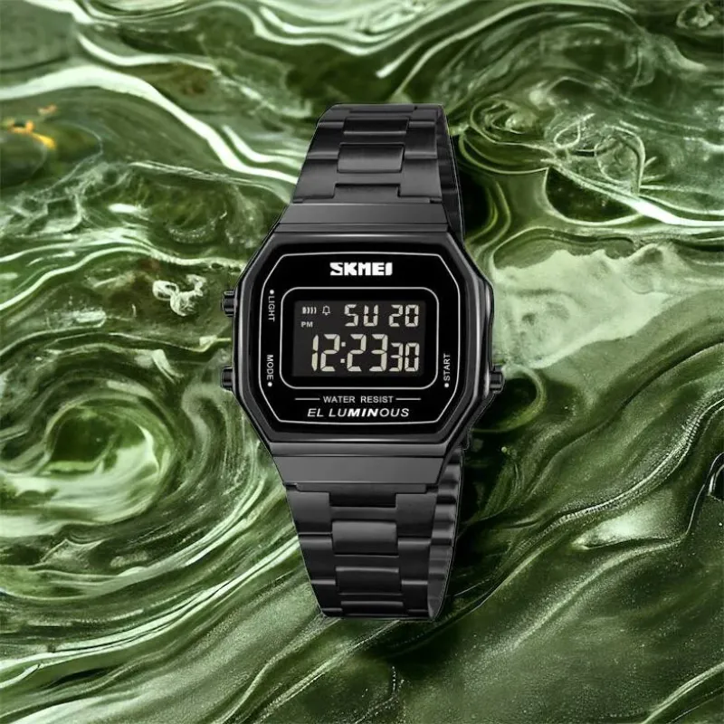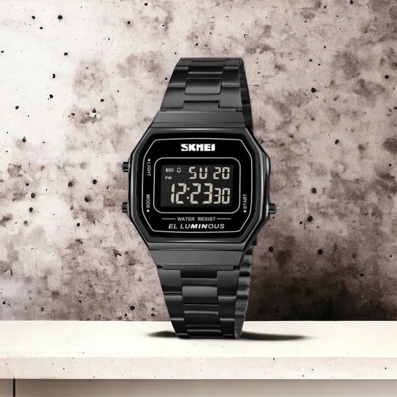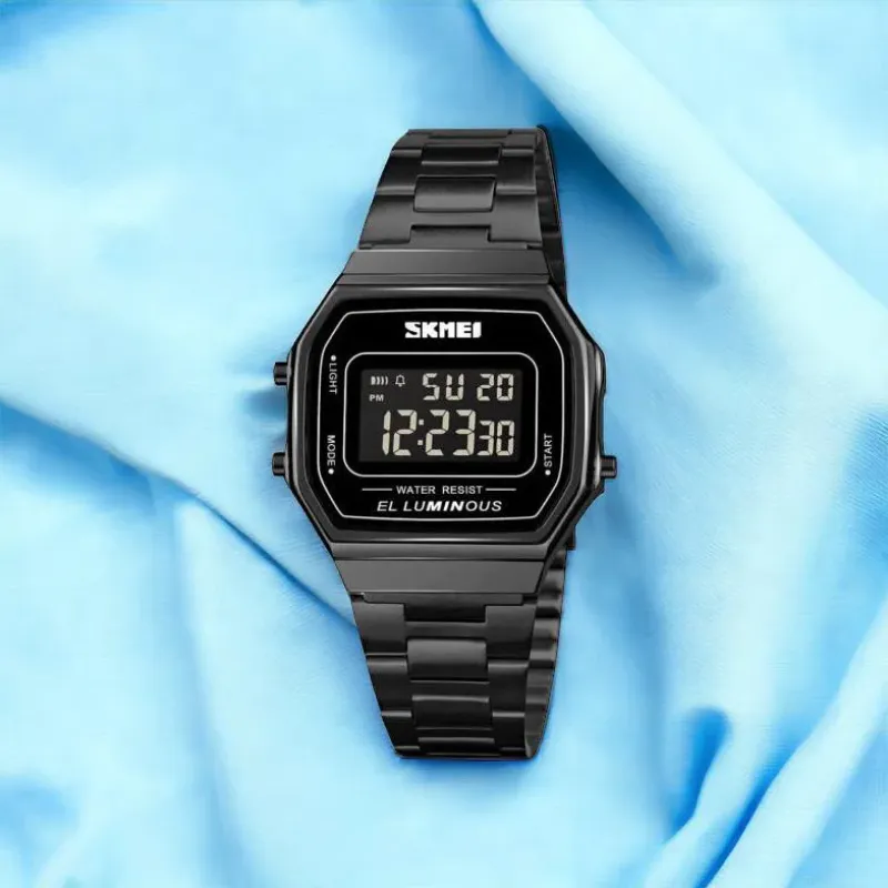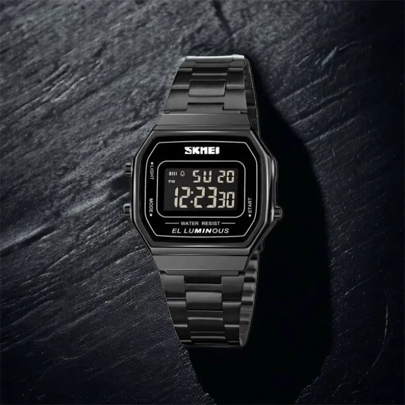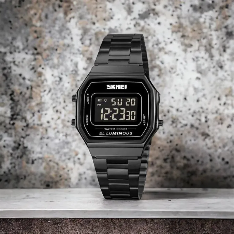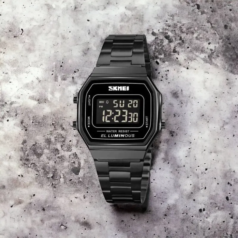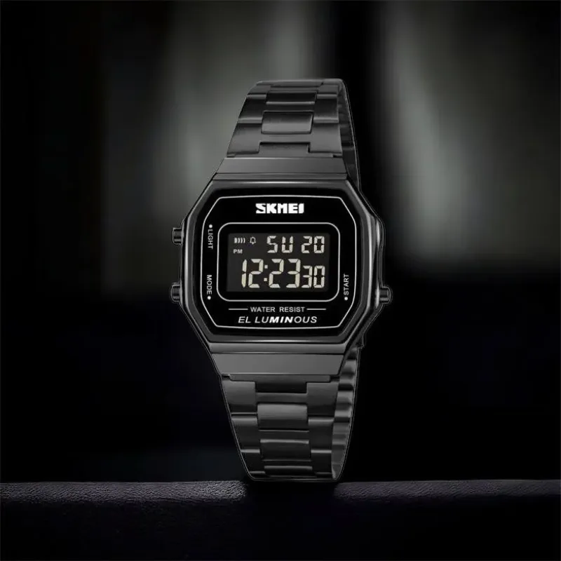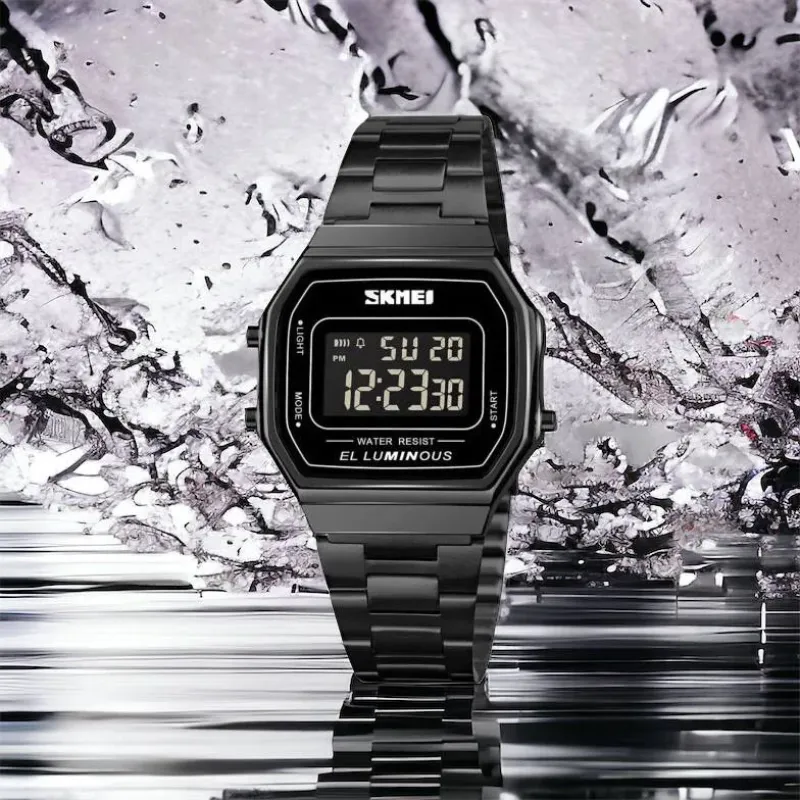 Часы SKMEI 1647BK – это стильный аксессуар в классическом ретро-дизайне с современной функциональностью. Его компактный корпус в сочетании с металлическим браслетом черного цвета выглядит сдержанно и элегантно, что делает эту модель отличным выбором как для офисного стиля, так и для повседневной носки. Благодаря удобному цифровому дисплею и подсветке, часы остаются информативными даже в темное время суток.