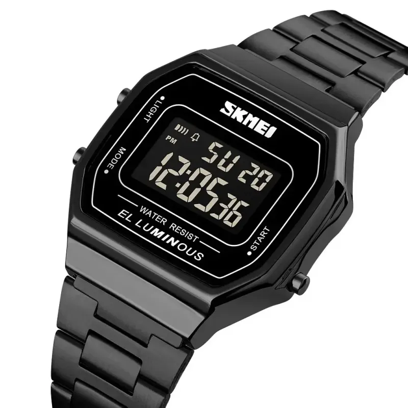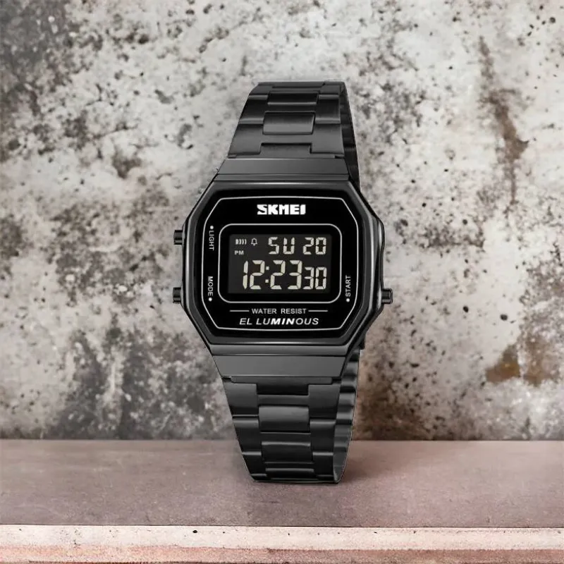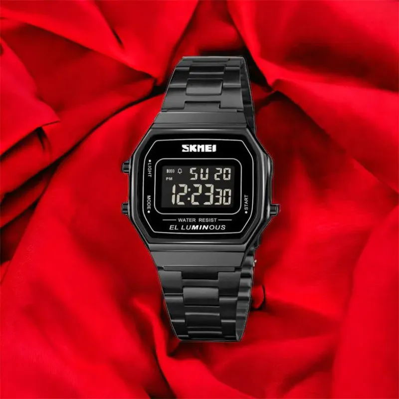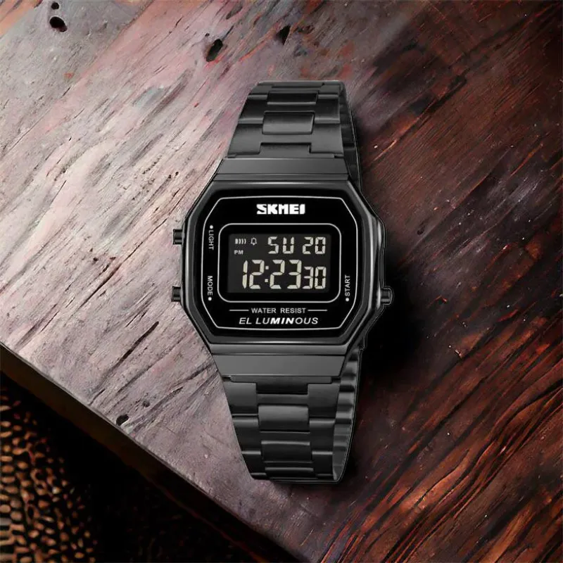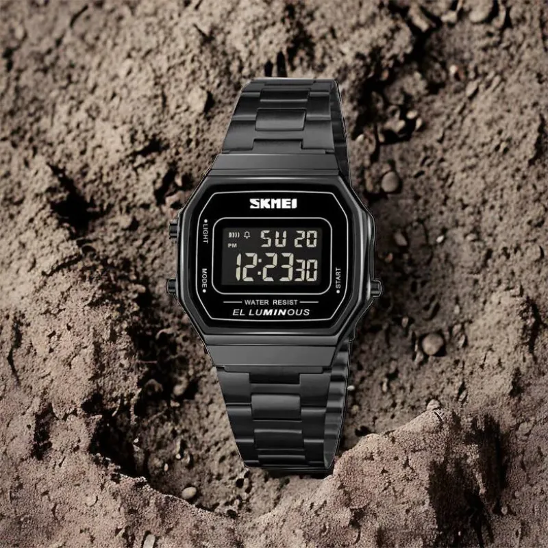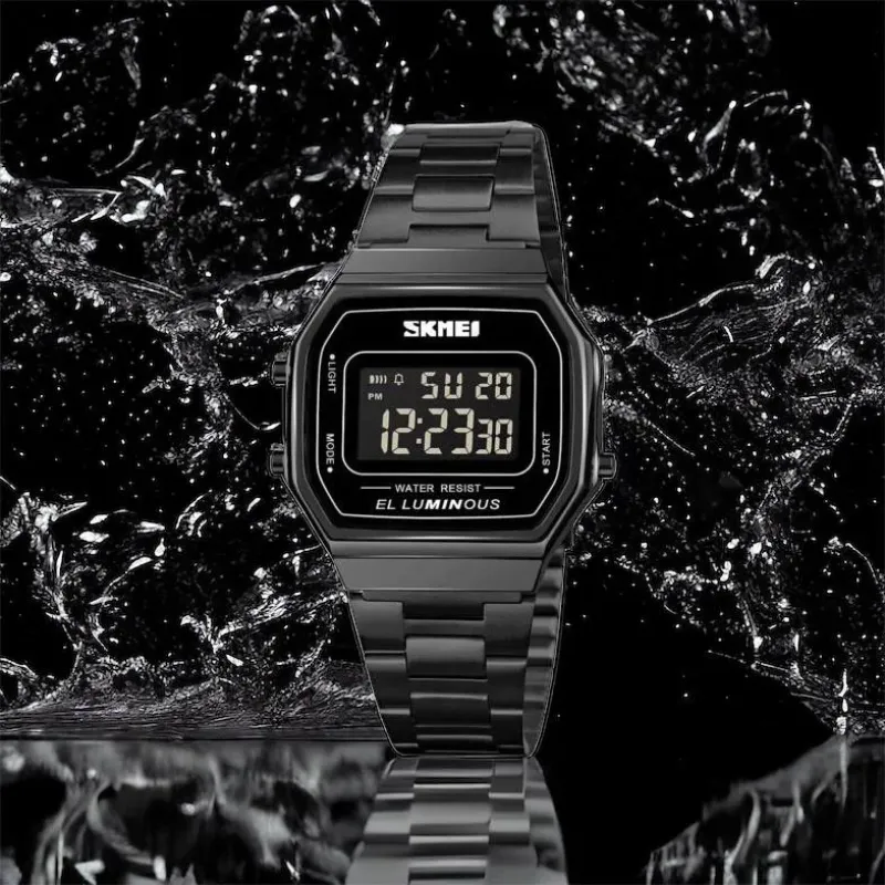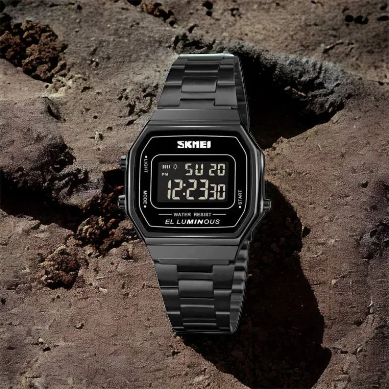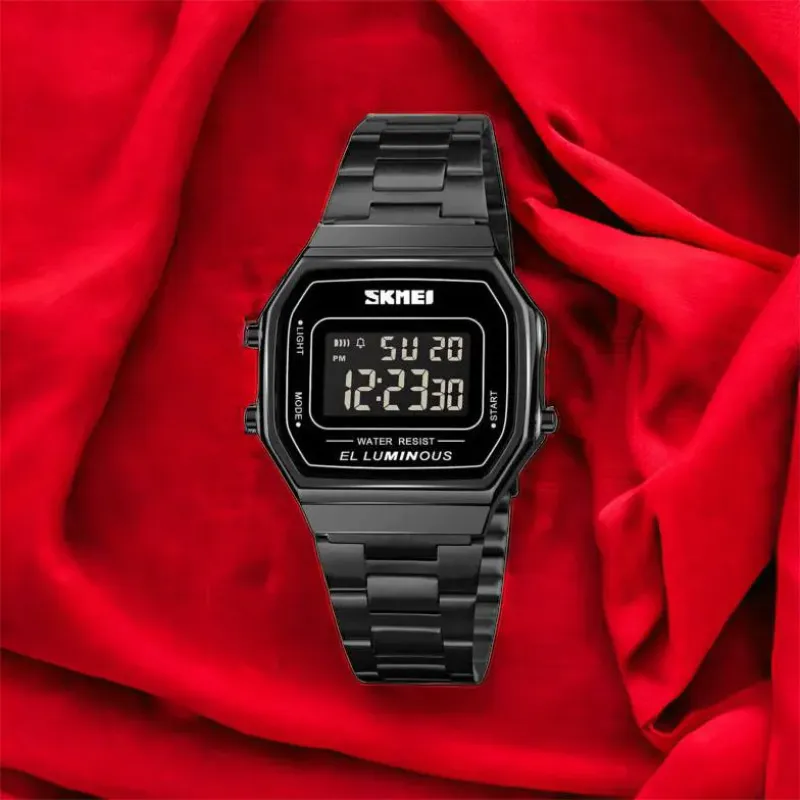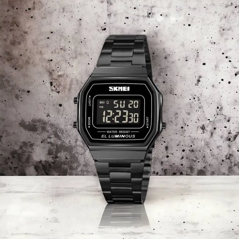 Часы SKMEI 1647BK – это стильный аксессуар в классическом ретро-дизайне с современной функциональностью. Его компактный корпус в сочетании с металлическим браслетом черного цвета выглядит сдержанно и элегантно, что делает эту модель отличным выбором как для офисного стиля, так и для повседневной носки. Благодаря удобному цифровому дисплею и подсветке, часы остаются информативными даже в темное время суток.