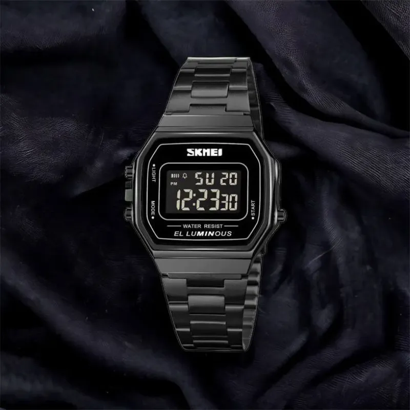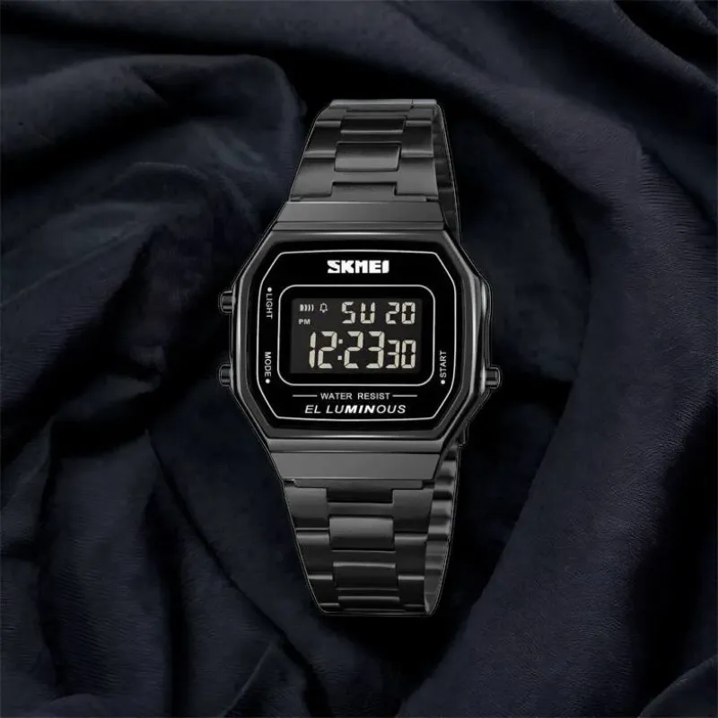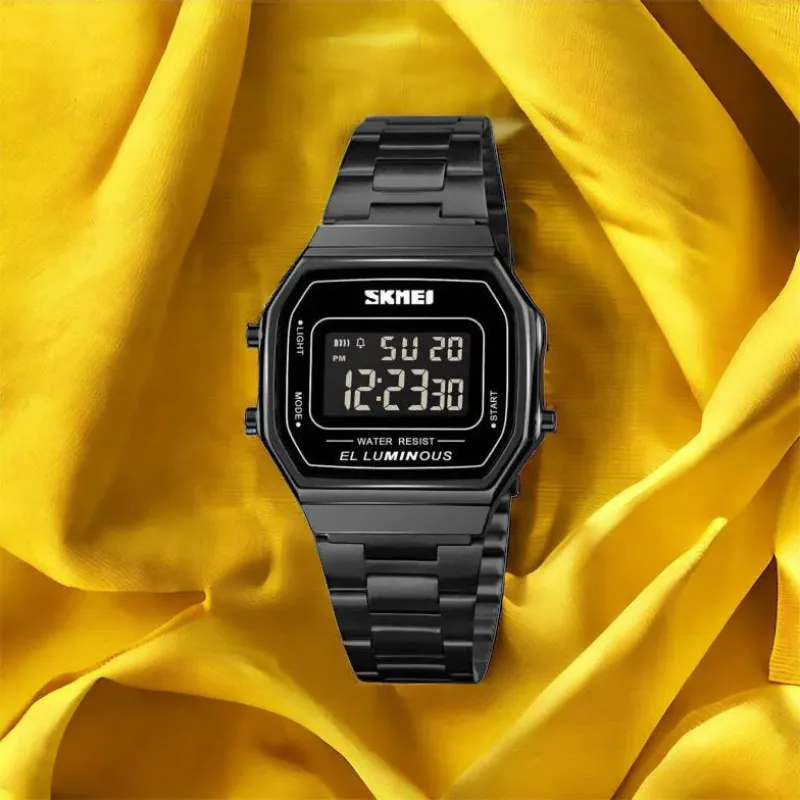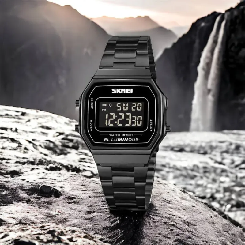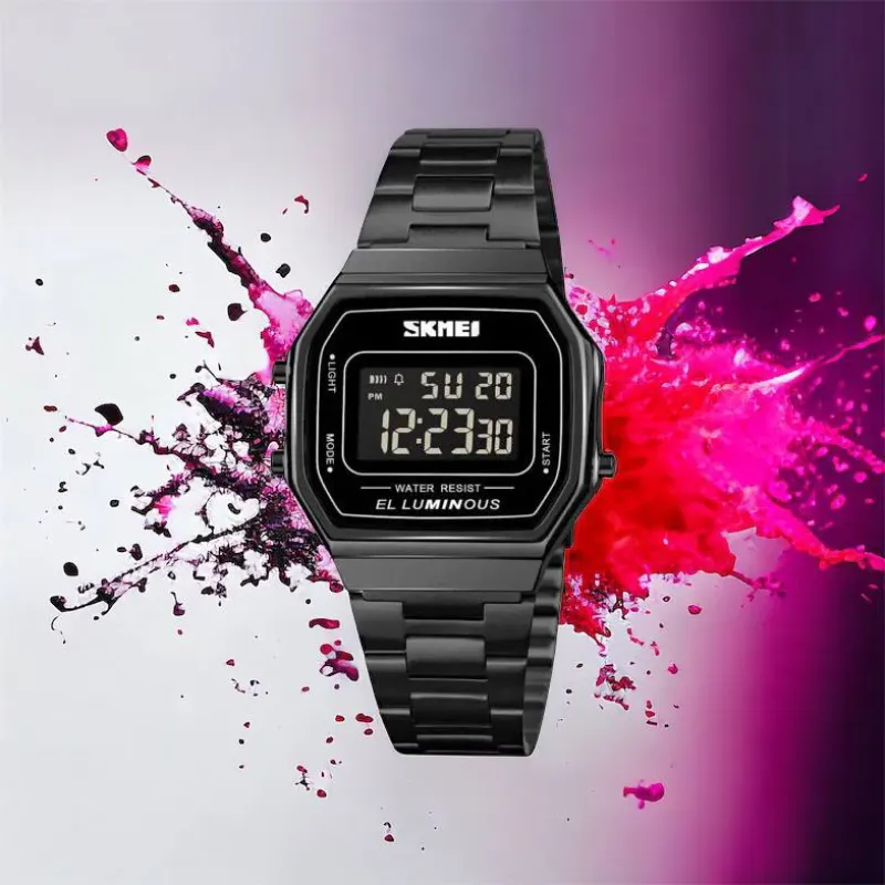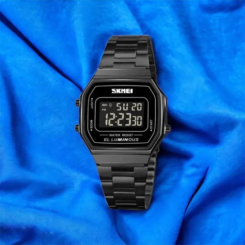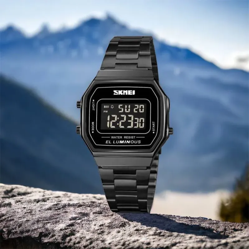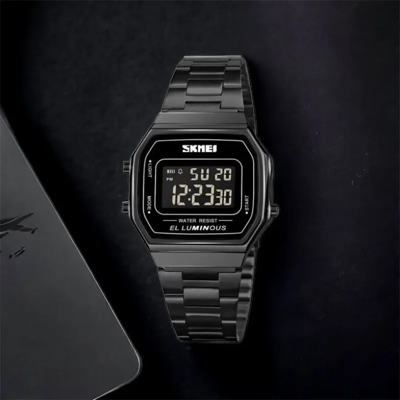 Часы SKMEI 1647BK – это стильный аксессуар в классическом ретро-дизайне с современной функциональностью. Его компактный корпус в сочетании с металлическим браслетом черного цвета выглядит сдержанно и элегантно, что делает эту модель отличным выбором как для офисного стиля, так и для повседневной носки. Благодаря удобному цифровому дисплею и подсветке, часы остаются информативными даже в темное время суток.
