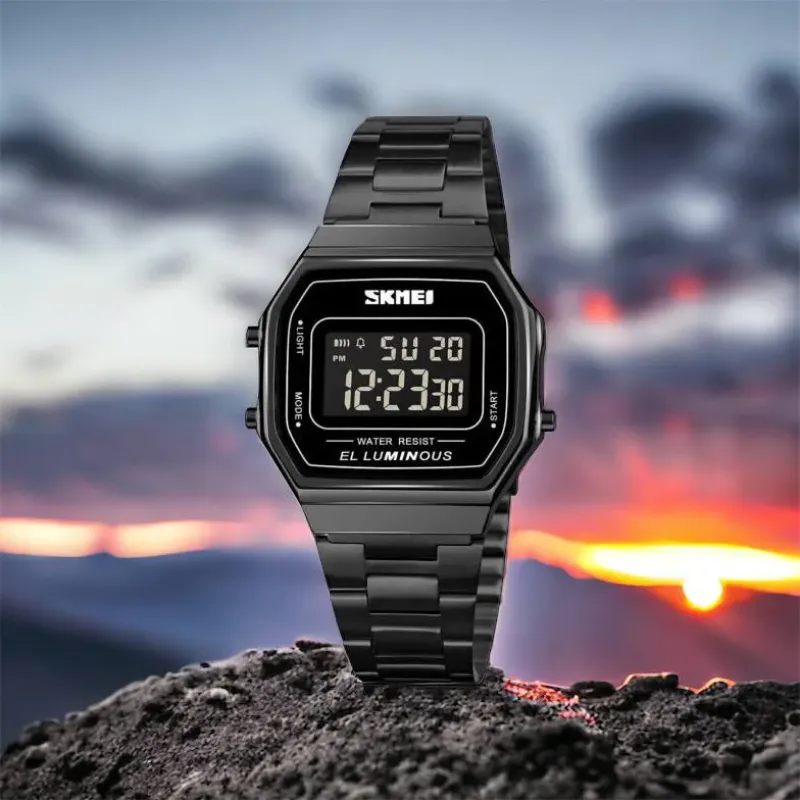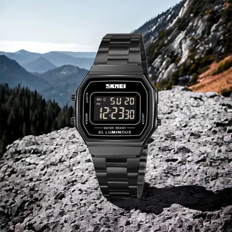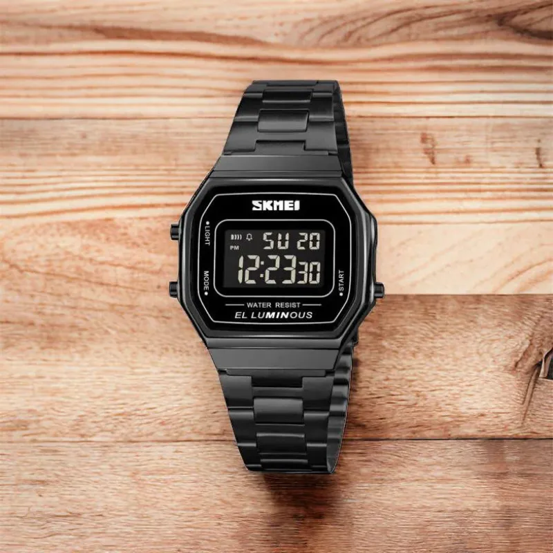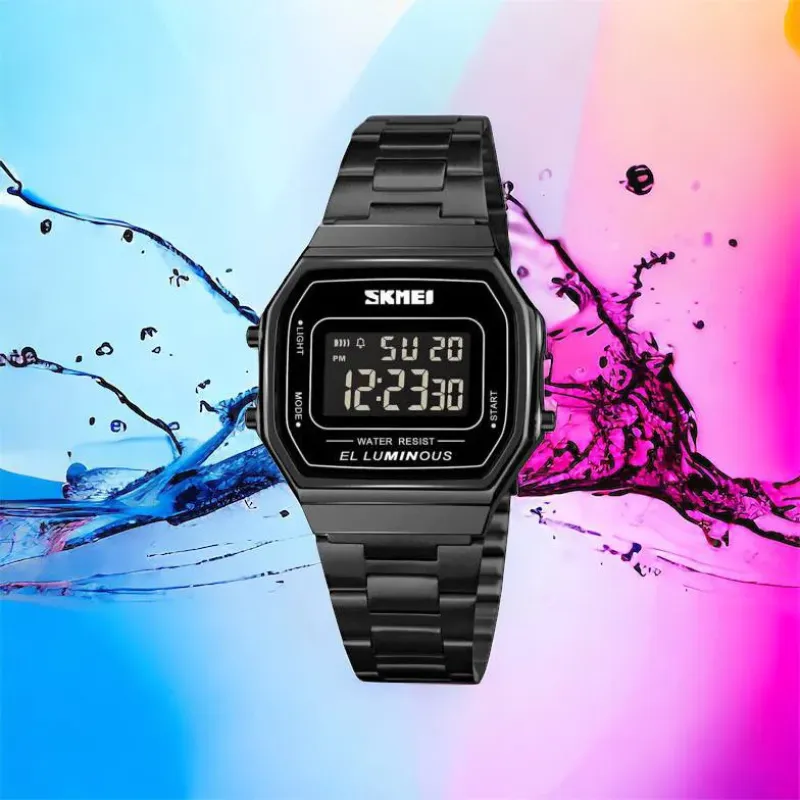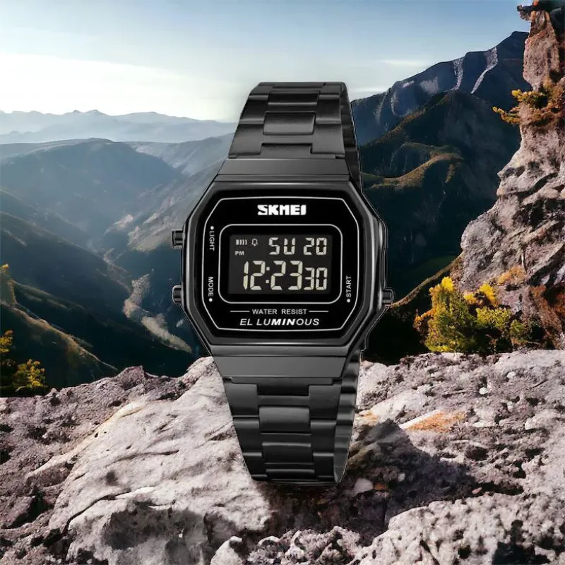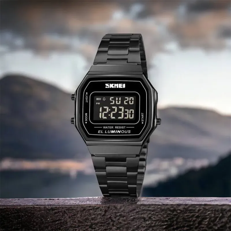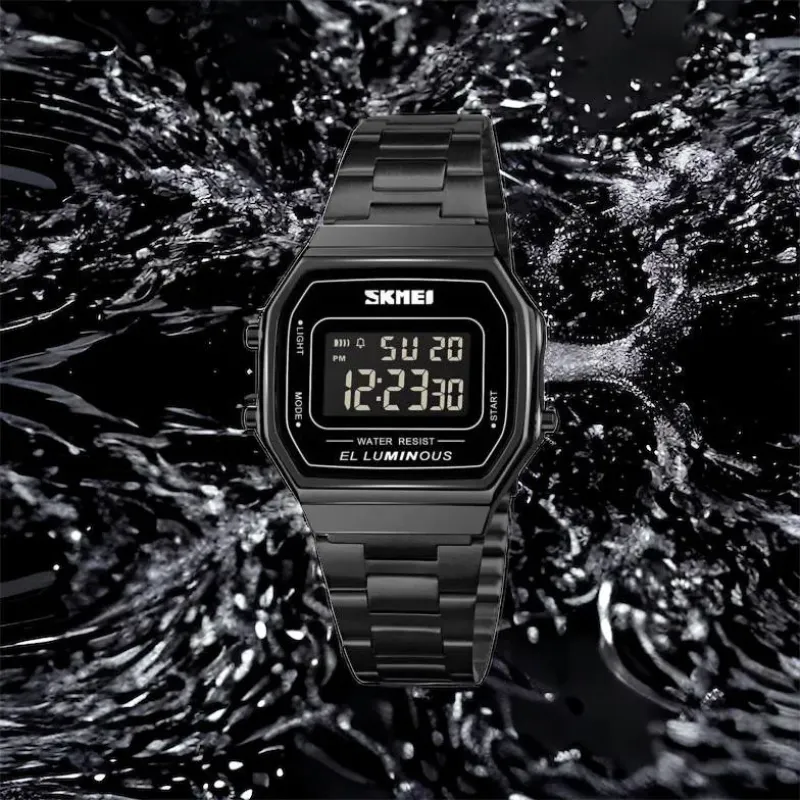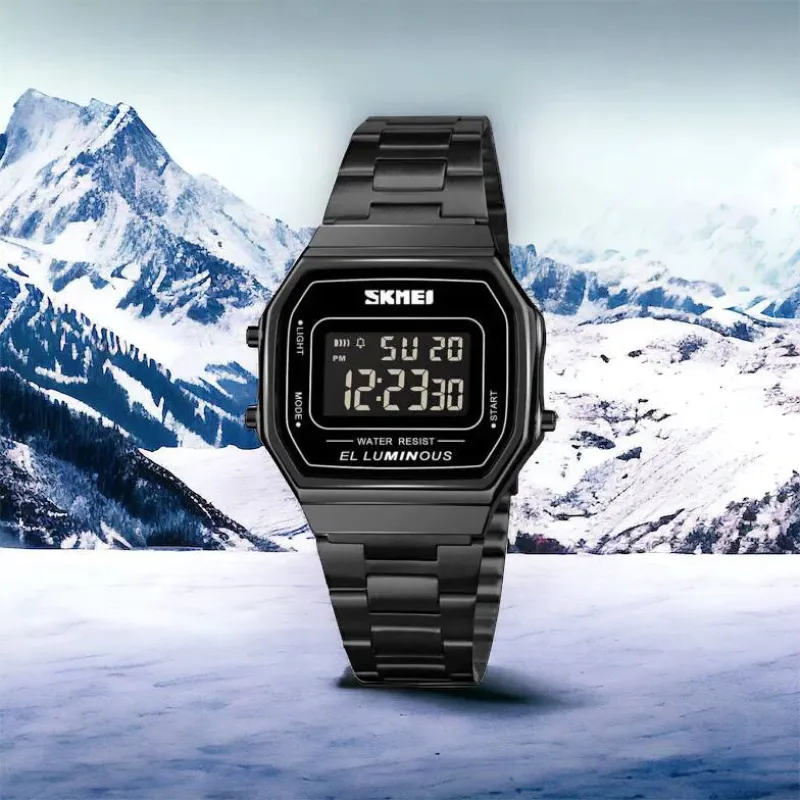 Часы SKMEI 1647BK – это стильный аксессуар в классическом ретро-дизайне с современной функциональностью. Его компактный корпус в сочетании с металлическим браслетом черного цвета выглядит сдержанно и элегантно, что делает эту модель отличным выбором как для офисного стиля, так и для повседневной носки. Благодаря удобному цифровому дисплею и подсветке, часы остаются информативными даже в темное время суток.