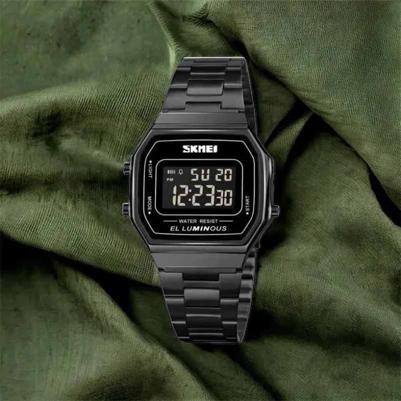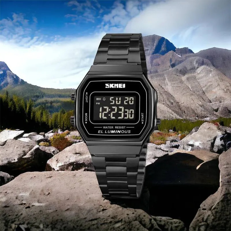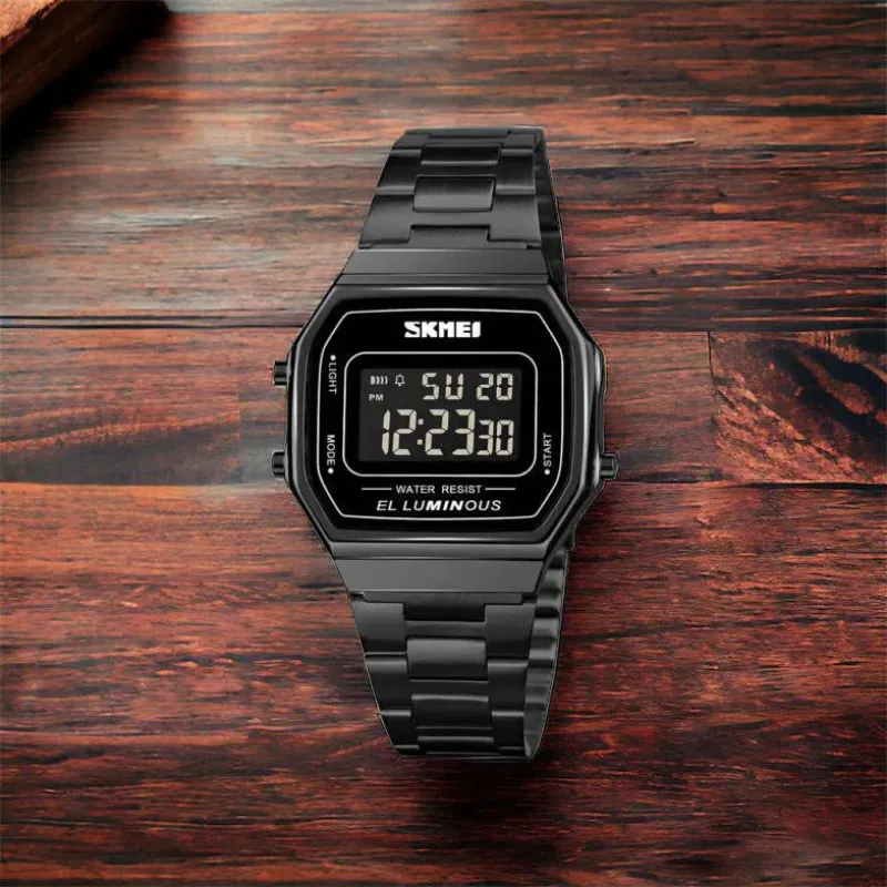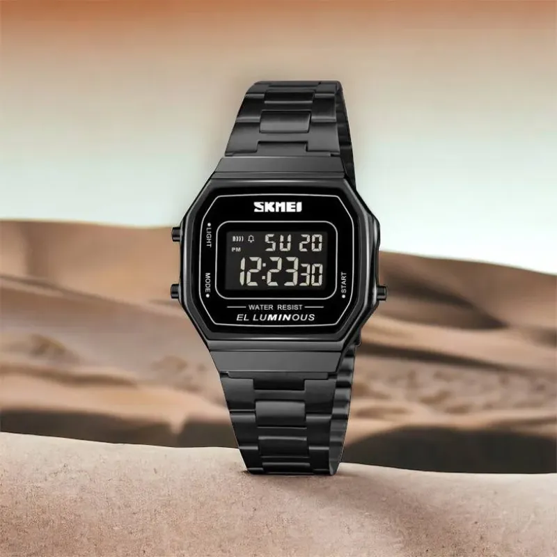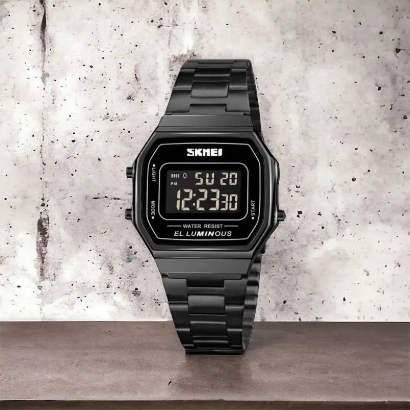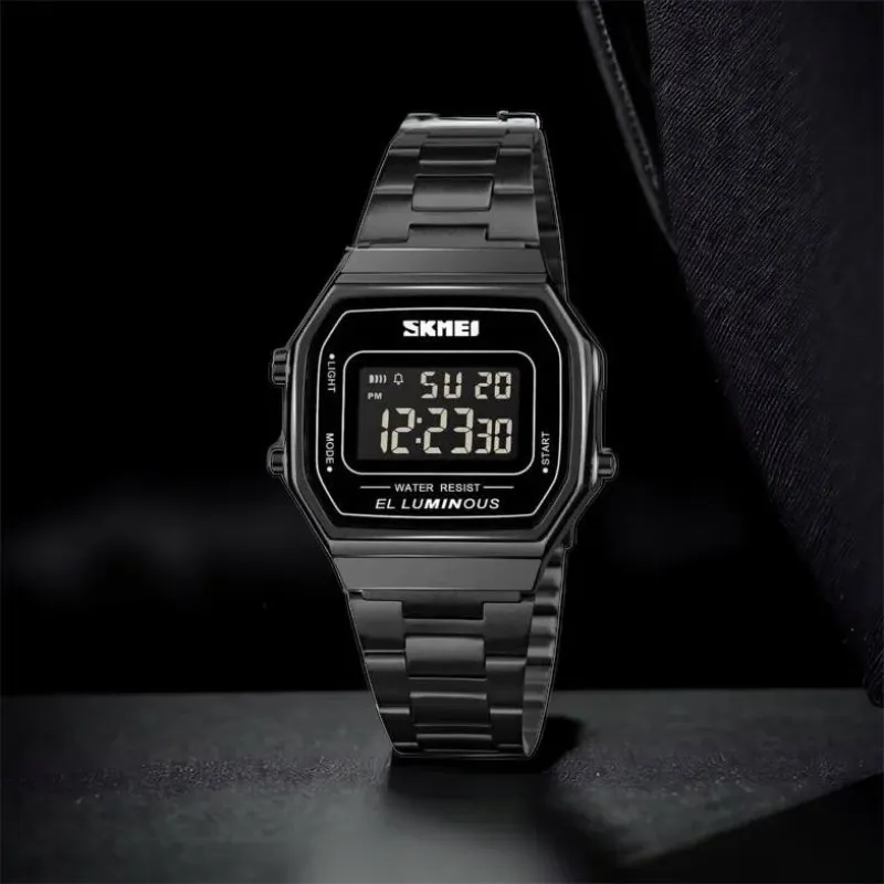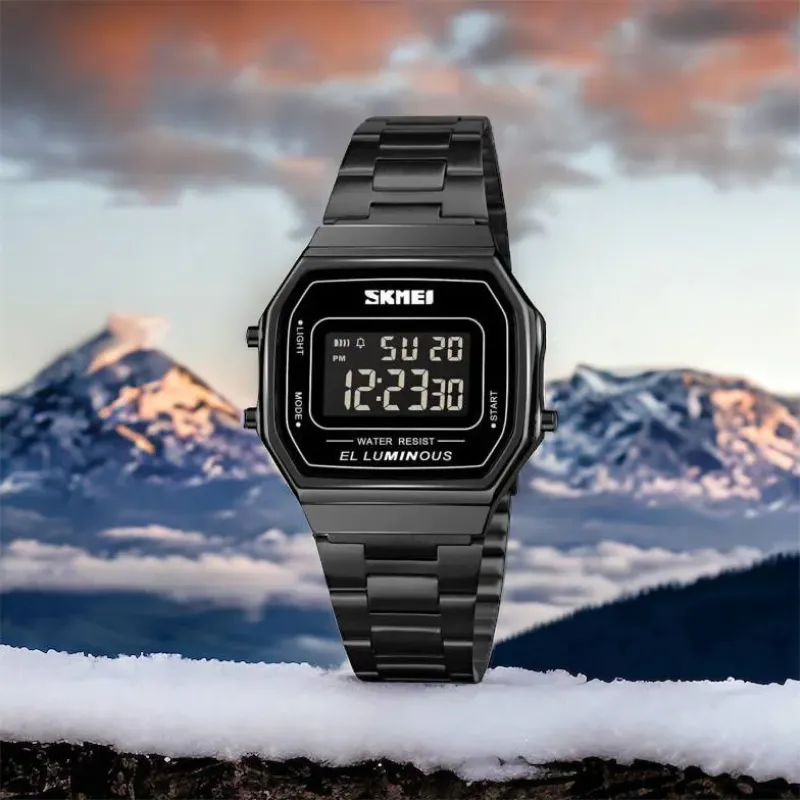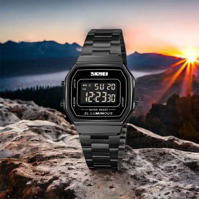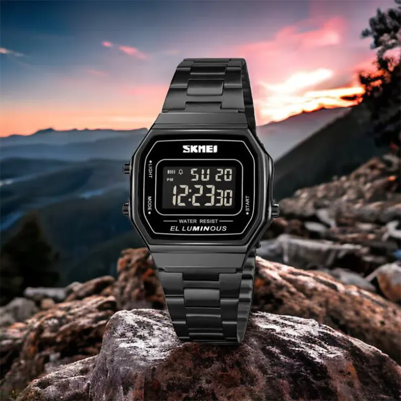 Часы SKMEI 1647BK – это стильный аксессуар в классическом ретро-дизайне с современной функциональностью. Его компактный корпус в сочетании с металлическим браслетом черного цвета выглядит сдержанно и элегантно, что делает эту модель отличным выбором как для офисного стиля, так и для повседневной носки. Благодаря удобному цифровому дисплею и подсветке, часы остаются информативными даже в темное время суток.