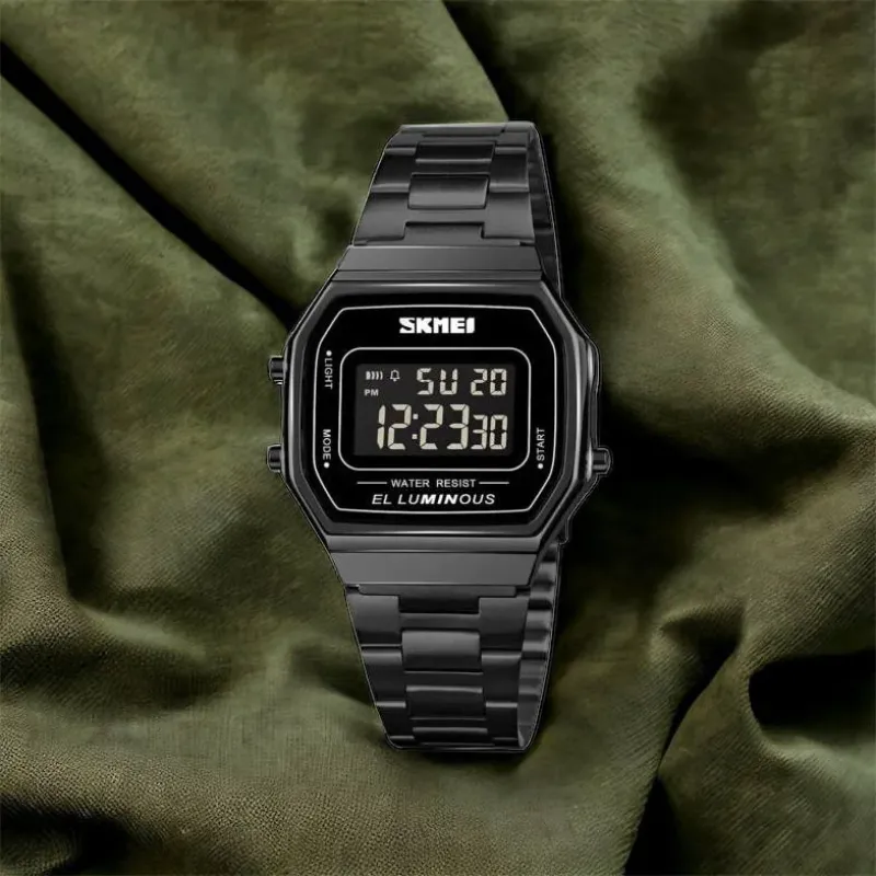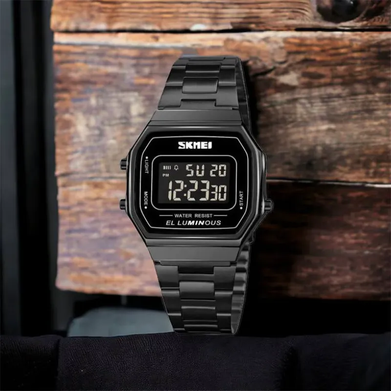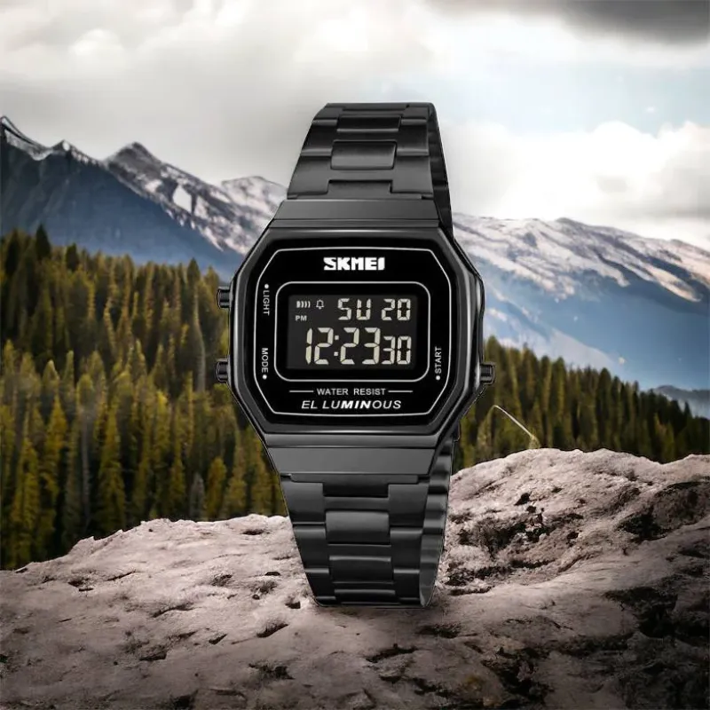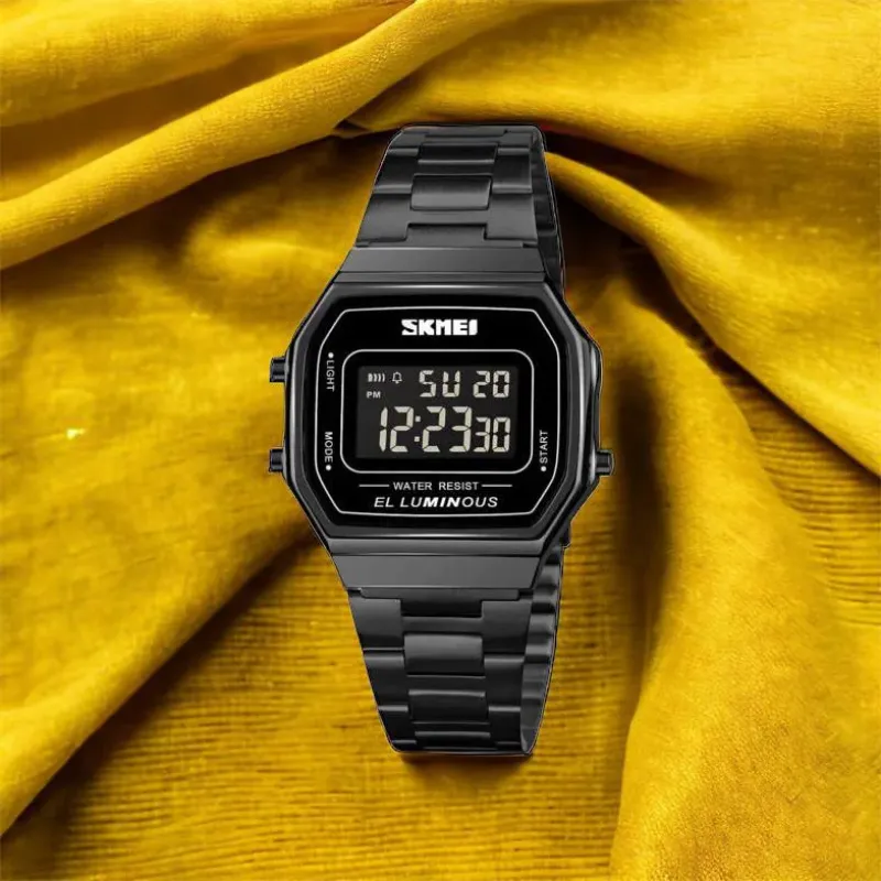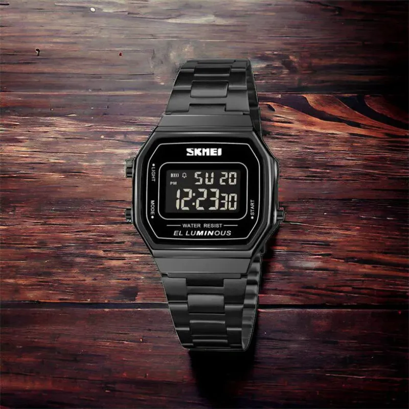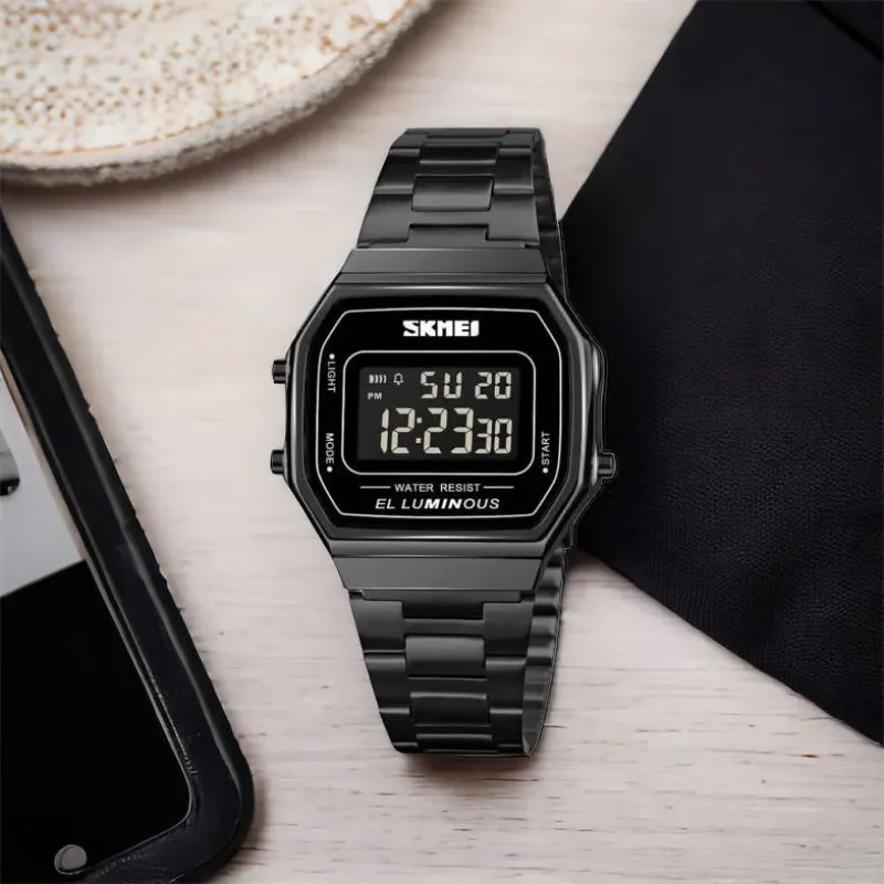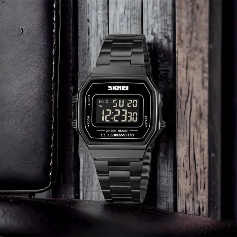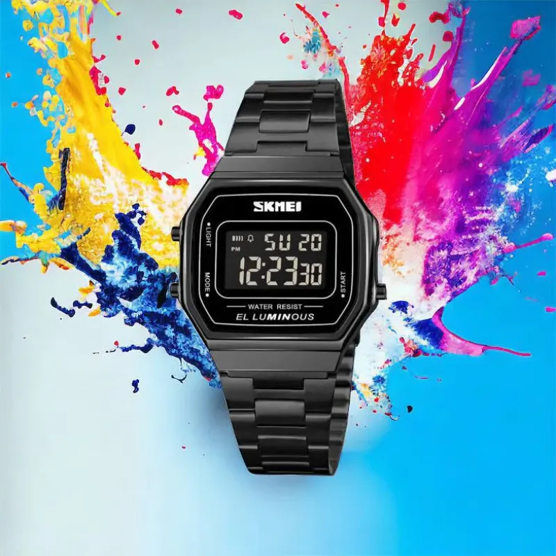 Часы SKMEI 1647BK – это стильный аксессуар в классическом ретро-дизайне с современной функциональностью. Его компактный корпус в сочетании с металлическим браслетом черного цвета выглядит сдержанно и элегантно, что делает эту модель отличным выбором как для офисного стиля, так и для повседневной носки. Благодаря удобному цифровому дисплею и подсветке, часы остаются информативными даже в темное время суток.