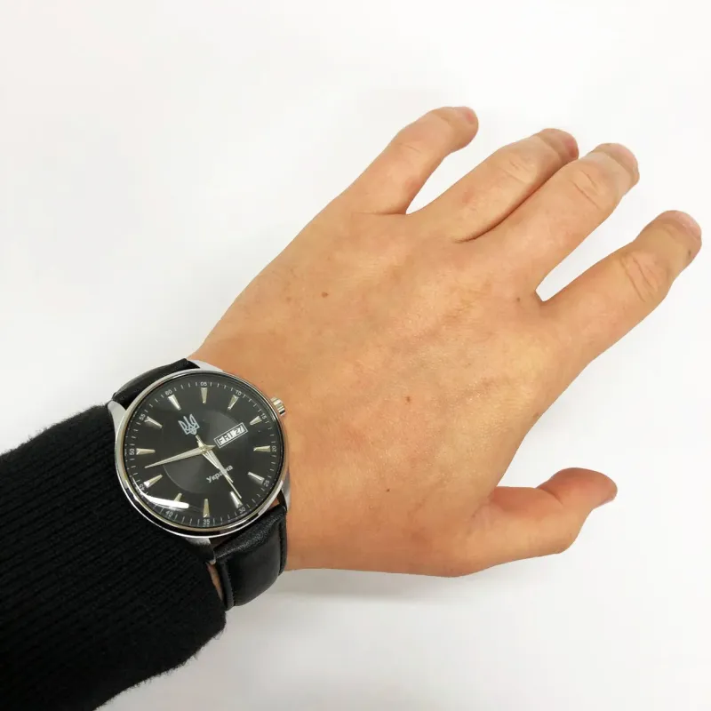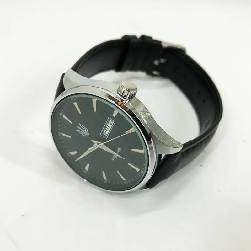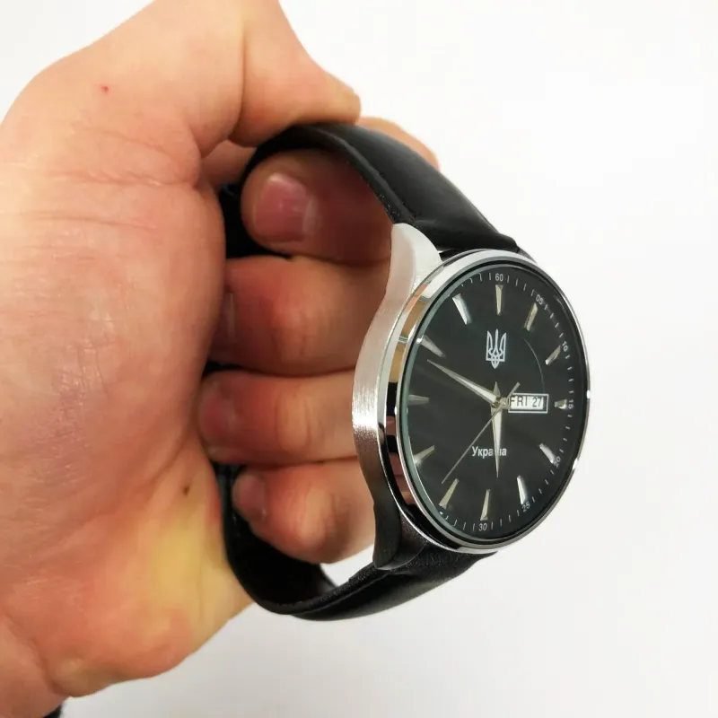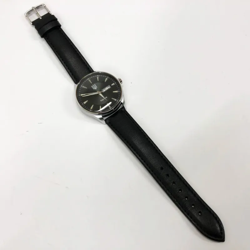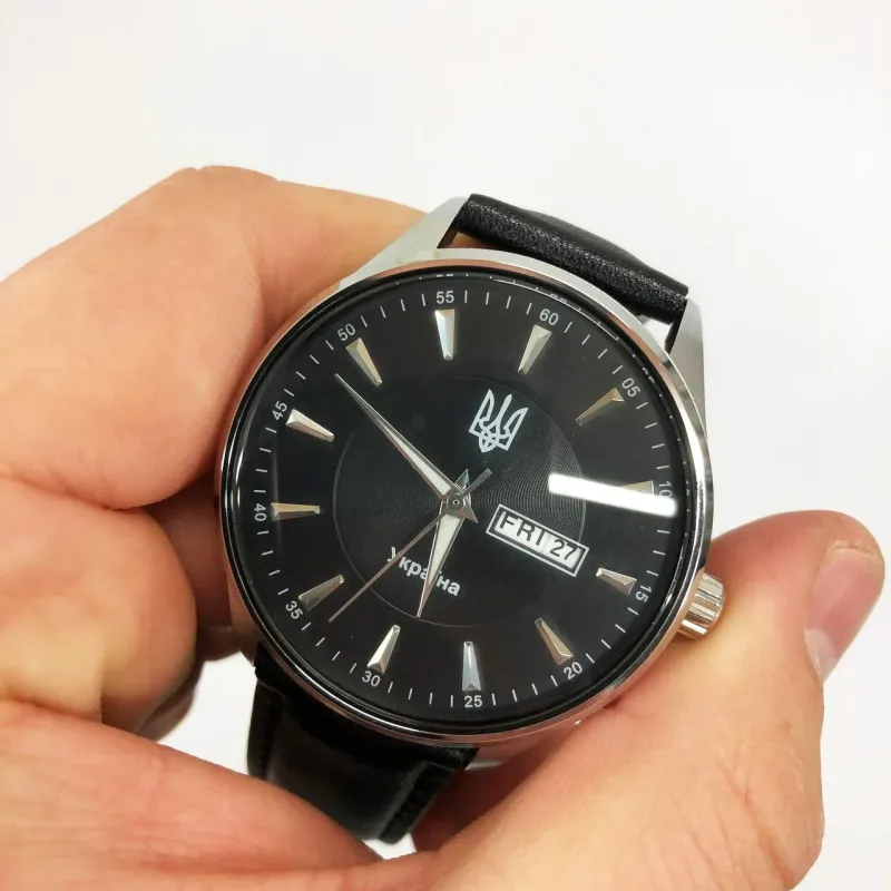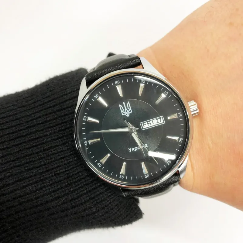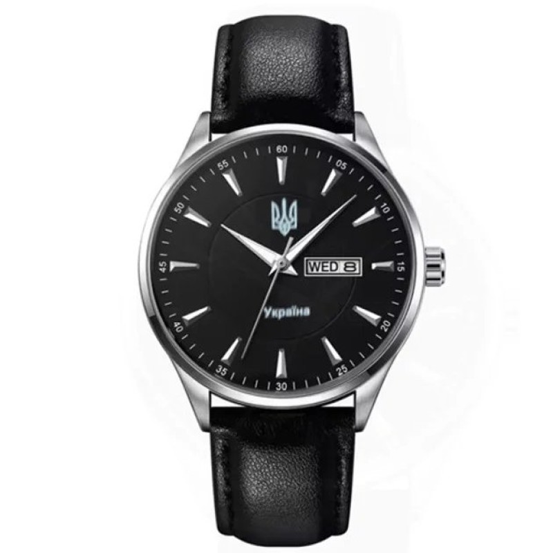 SKMEI 5702/2075SIBK — это классические кварцевые часы с патриотическим содержанием, гармонично сочетающие элегантный вид и повседневную функциональность. Глубокий черный циферблат с контрастными отметинами, серебристыми стрелками и украинской символикой (трезубец и надпись "Украина") добавляют модели узнаваемости и содержания. Корпус с полированным стальным блеском дополнен ремешком из кожзама, что обеспечивает комфорт и выдержанность стиля.