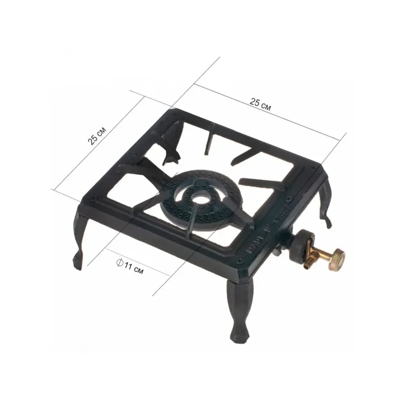 Надміцна чавунна газова плита моделі ГБ-01 потужністю 3.5 кВт — це професійне рішення для приготування їжі у великих обсягах. Завдяки суцільнолитому корпусу з товстостінного чавуну, ця плита витримує величезні навантаження. Ви можете сміливо ставити на неї важкі казани, автоклави, баки з водою або виварки — вона не прогнеться і не деформується. Чому варто купити саме цю модель: Висока потужність: Пальник видає 3.5 кВт теплової енергії, що дозволяє дуже швидко закип'ятити великий об'єм води або розігріти чавунний казан для плову. Довговічність: Чавун — це "вічний" матеріал. Він не прогорає, стійкий до корозії та механічних пошкоджень. Універсальність: Ідеально підходить для використання на дачі, у приватному будинку, на польовій кухні, у фермерських господарствах або для вуличних точок харчування. Стійкість: Чотири міцні ніжки забезпечують надійну фіксацію на будь-якій поверхні. Плита працює від балонного газу (пропан-бутан). Характеристики: Матеріал корпусу та пальника: Чавун Потужність: 3.5 кВт Розміри: 25 х 25 см Висота: 12 см Діаметр конфорки: 11 см Тип палива: Скраплений газ (балон) Тип підпалу: Ручний (сірником/запальничкою)