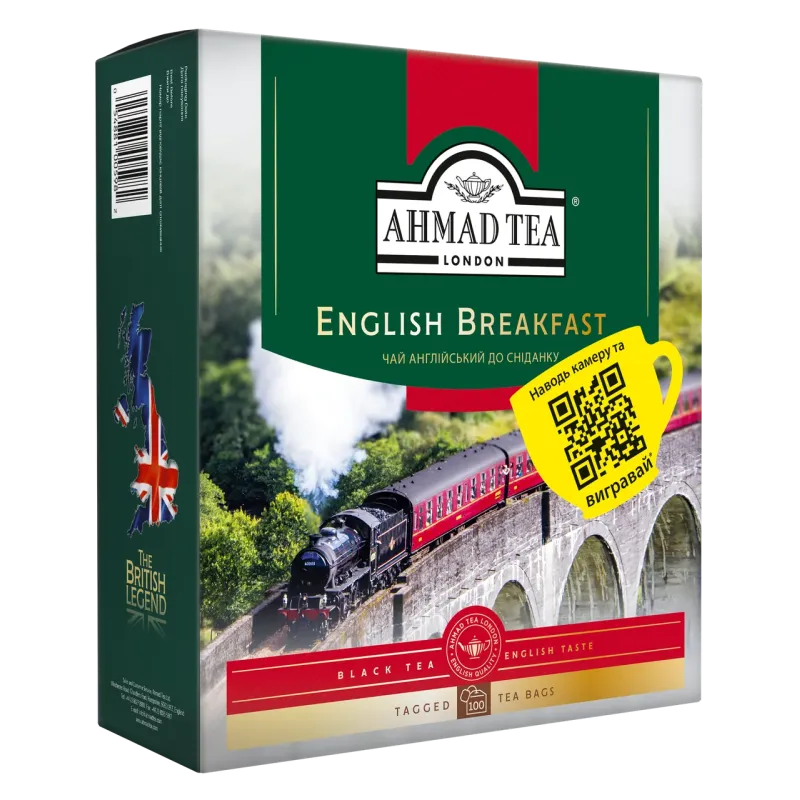 Теги: чорний чай, Ahmad Tea, English Breakfast, акція, британська легенда, міцний, чайні пакетики