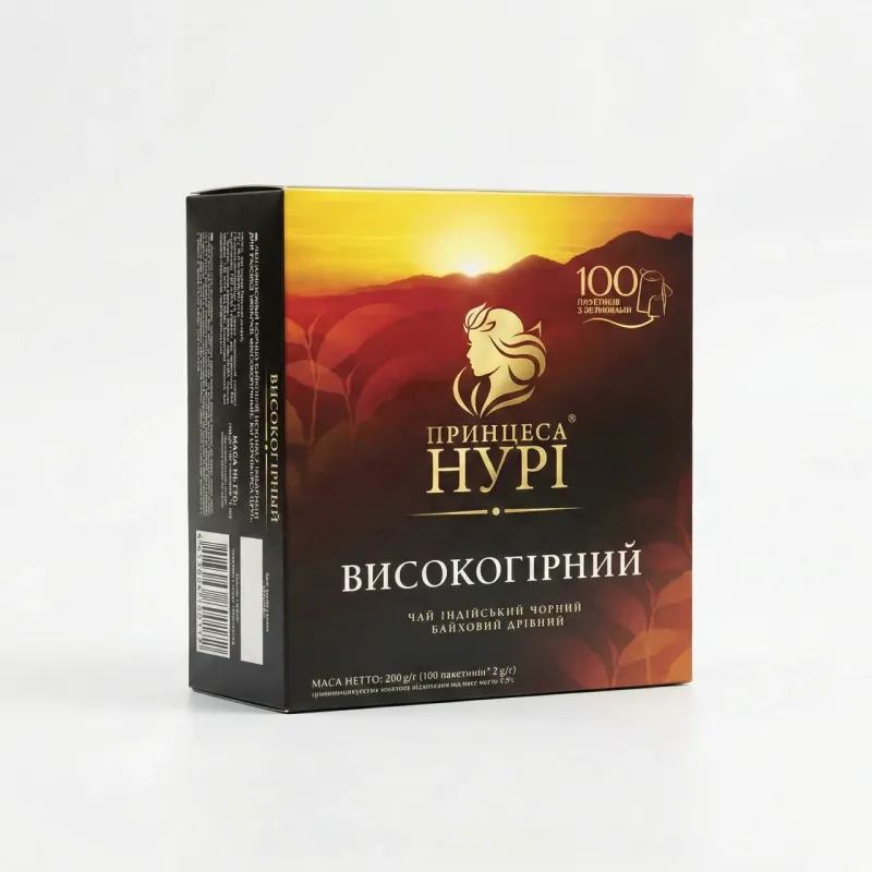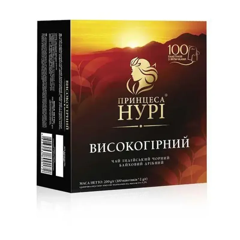 Чай чорний Принцеса Нурі Високогірний 100 пакетиків | Індійський, Міцний, З ярличками, Сімейна упаковка