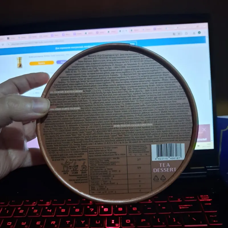 Колекція чаю Lovare Tea Dessert — вишукані десерти у вашій чашці! Подарунковий набір Lovare Tea Dessert — це унікальна асорті-колекція, що поєднує в собі багатство чайного листя з ароматами улюблених десертів, фруктів та квітів. Стильний круглий тубус робить цей чай ідеальним варіантом для подарунка близьким, колегам або вчителям. Усередині тубуса 4 види чаю (по 8 пакетиків кожного): Це мікс найпопулярніших десертних смаків бренду. Кожен пакетик в індивідуальному конверті, що зберігає аромат та свіжість напою. Чому обирають Lovare Tea Dessert: Ефектний дизайн: Красива упаковка-тубус, яку не соромно подарувати. Різноманітність: 4 різні смаки в одній упаковці — спробуйте всі та оберіть улюблений. Якість: Натуральні добавки (шматочки фруктів, пелюстки квітів) створюють неповторний букет смаку. Зручність: 32 пакетики в індивідуальних конвертах ідеально підходять для офісу чи дому. Характеристики: Тип: Асорті (чорний, зелений, трав'яний/фруктовий). Формат: Пакетований (в індивідуальних конвертах). Кількість: 32 шт. (4 смаки х 8 шт.). Упаковка: Картонний тубус. 🎁 Замовляйте Lovare Tea Dessert — подаруйте собі та близьким солодкий настрій без зайвих калорій!