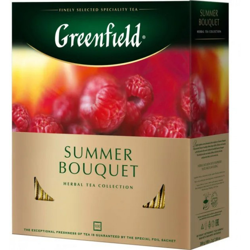 Чай трав'яний Greenfield Summer Bouquet 100 пакетиків | Малиновий, Фруктовий, Каркаде, Вітамінний