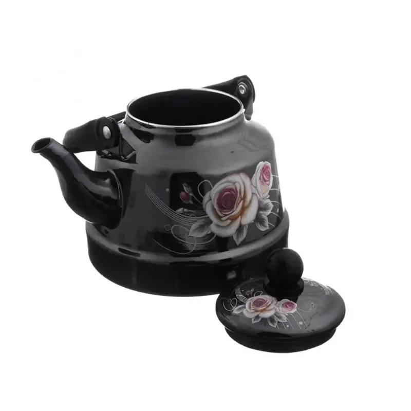Чайник емальований 2.5 л A-Plus чорний з квітковим принтом "Троянда". Посуд для всіх видів плит