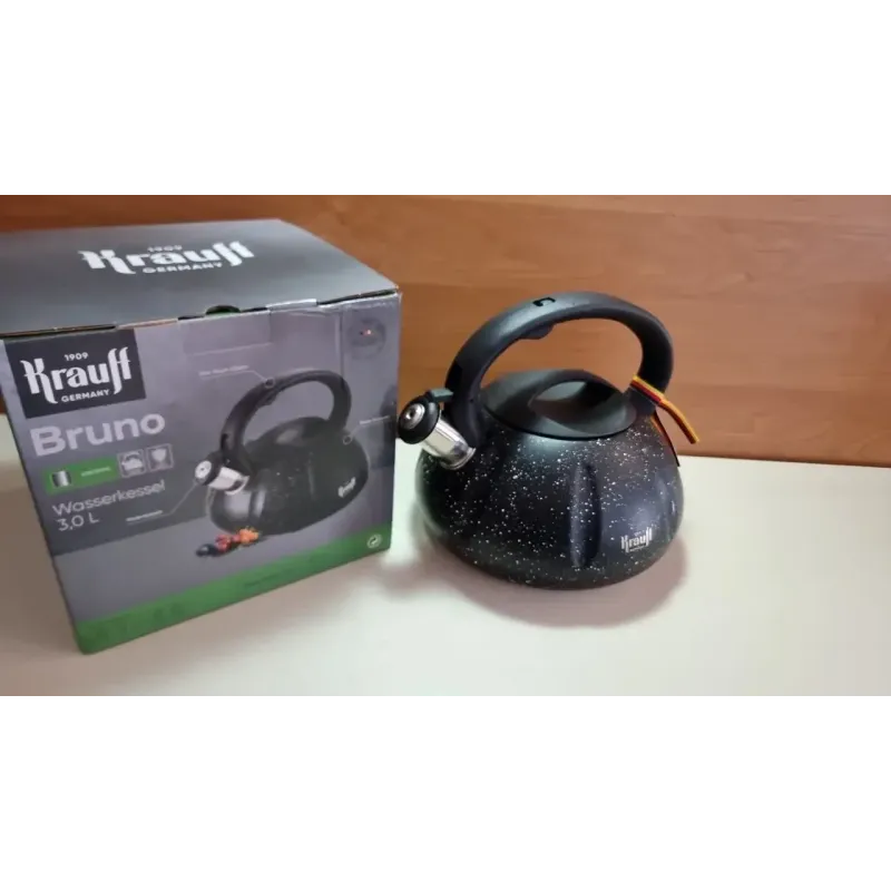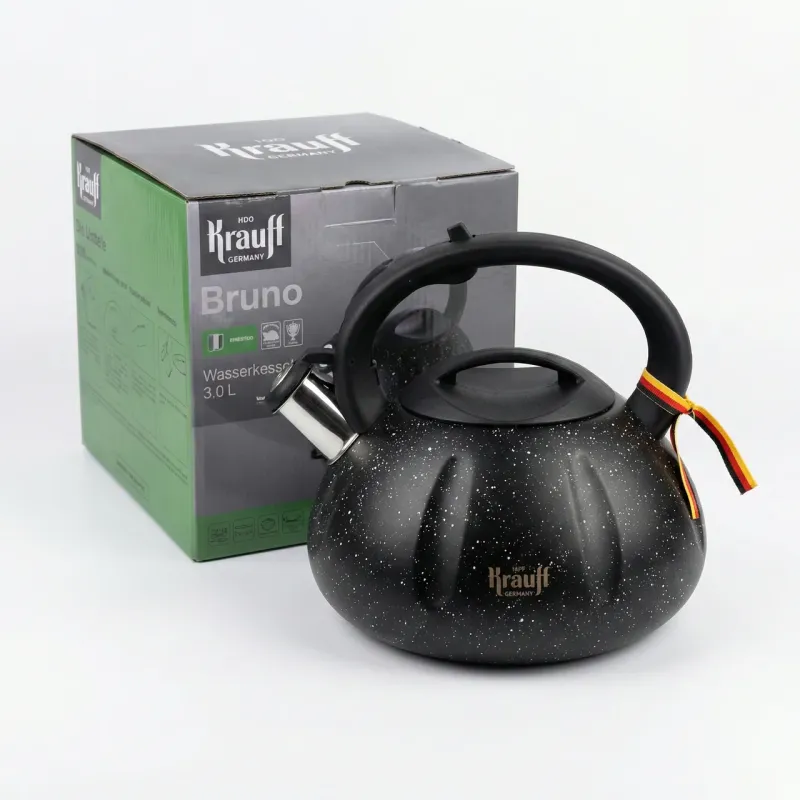 🛒 Шукаєте надійний товар? Ви можете купити Чайник зі свистком 3.0 л Krauff Bruno чорний мармуровий. Нержавіюча сталь, індукція в нашому інтернет-магазині Shtyrman. Гарантія якості та швидка доставка по всій Україні!