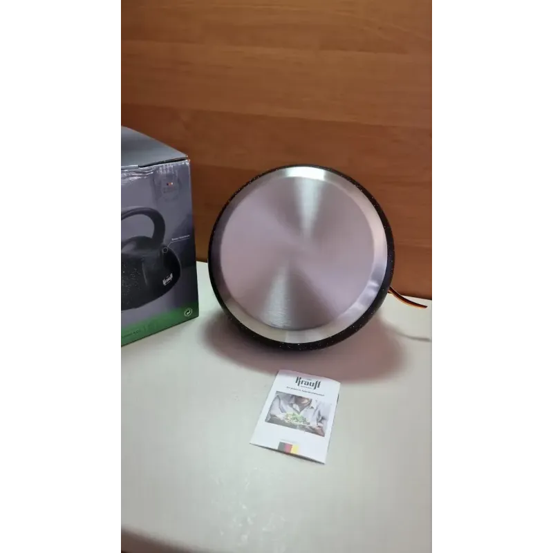 Чайник Krauff Bruno — це поєднання бездоганної німецької якості та вишуканого дизайну. Корпус виготовлений з міцної нержавіючої сталі, яка стійка до деформації та корозії. Особливістю моделі є стильне чорне покриття з білими вкрапленнями (ефект мармуру або граніту), що робить чайник справжньою окрасою сучасної кухні. Об'єм 3.0 літри ідеально підходить для сім'ї або прийому гостей. Чайник оснащений зручною бакелітовою ручкою з механізмом "One-Touch": свисток легко відкривається натисканням кнопки прямо на ручці, що вберігає руки від опіків. Багатошарове термоаккумулююче дно забезпечує швидке закипання води та підходить для всіх видів плит, включаючи індукційні. Характеристики: Бренд: Krauff (Німеччина) Модель: Bruno Об'єм: 3.0 л Матеріал: Нержавіюча сталь Колір: Чорний з ефектом "граніт/мармур" Особливості: Відкривання свистка кнопкою на ручці, індукційне дно