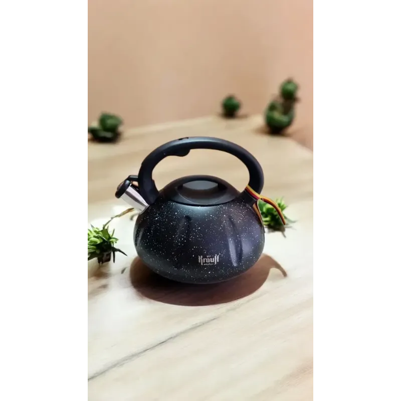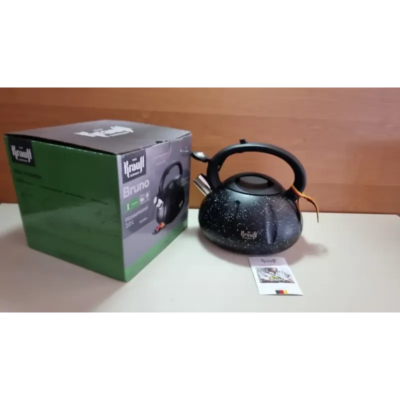 Чайник зі свистком 3.0 л Krauff Bruno чорний мармуровий. Нержавіюча сталь, індукція