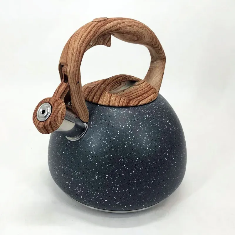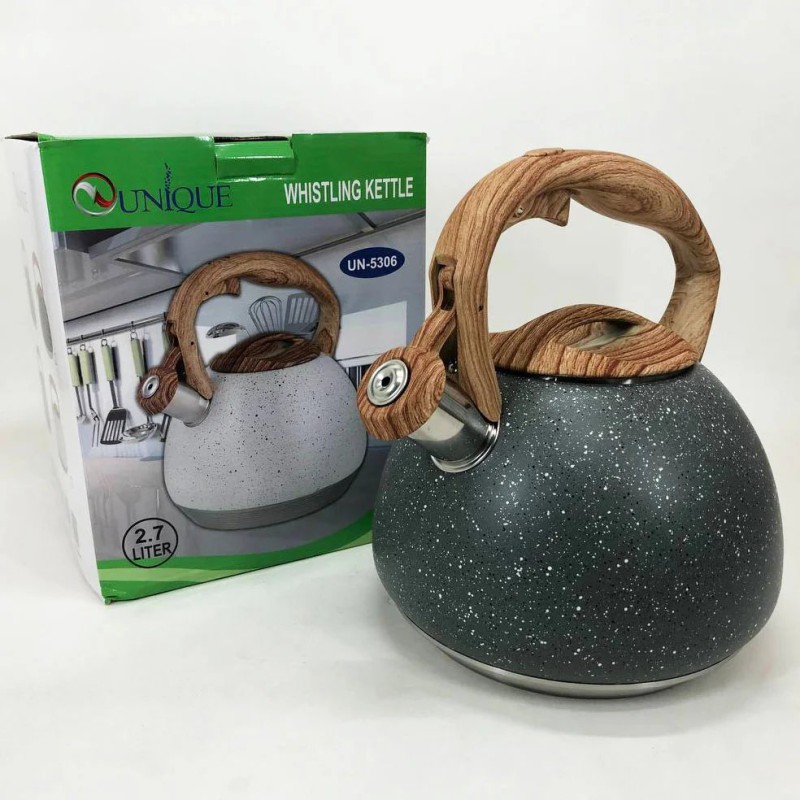 Чайник Unique со свистком UN-5306 2,7л мрамор, для газовых плит, чайник нержавейка. Цвет: темно-серый