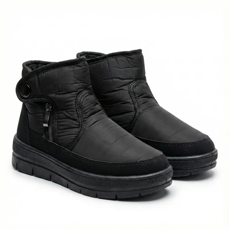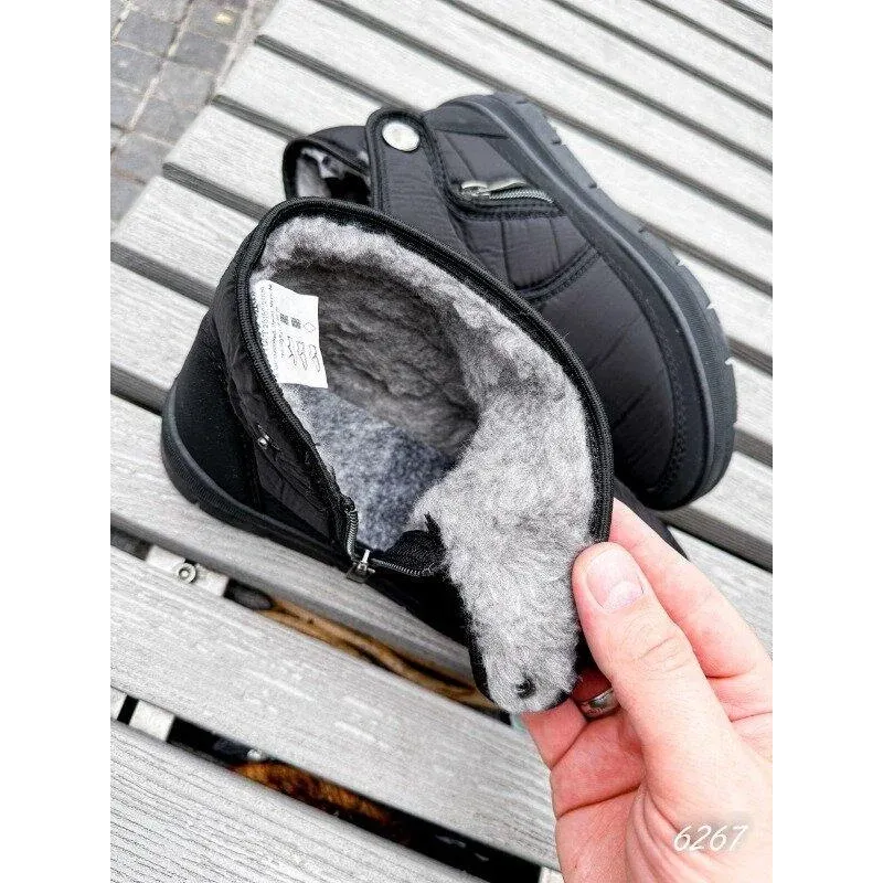 Жіночі короткі зимові дутики — тепло та м'якість домашнього затишку! Ці черевики створені для того, щоб ви забули про холод. Модель поєднує в собі практичність дутиків та комфорт м'яких бурок. Верх виконаний із стьобаного водовідштовхувального текстилю з посиленими вставками біля підошви. Лаконічний чорний колір робить їх універсальними під будь-який одяг. Чому варто купити цю пару: Максимальне тепло: Всередині — густе, щільне хутро сірого кольору, яке заповнює весь простір черевика, огортаючи ногу теплом. Легкість взування: Завдяки двом блискавкам з боків (або одній робочій блискавці та декоративному ґдзику) модель дуже легко взувати, вона підійде навіть на ногу з високим підйомом. Зручна підошва: Гнучка та легка підошва з протектором забезпечує впевненість на слизьких поверхнях та не обтяжує ногу при ходьбі. Стильний вигляд: Акуратна прострочка та декоративний елемент на застібці додають моделі шарму. Характеристики: Сезон: Зима. Матеріал верху: Текстиль (плащівка) + еко-замша. Матеріал підкладки: Дуже тепле еко-хутро. Застібка: Блискавка. Колір: Чорний. Розміри: 37, 38, 39, 40, 41, 42. ❄️ Замовляйте короткі теплі дутики — подаруйте своїм ніжкам комфорт цієї зими!