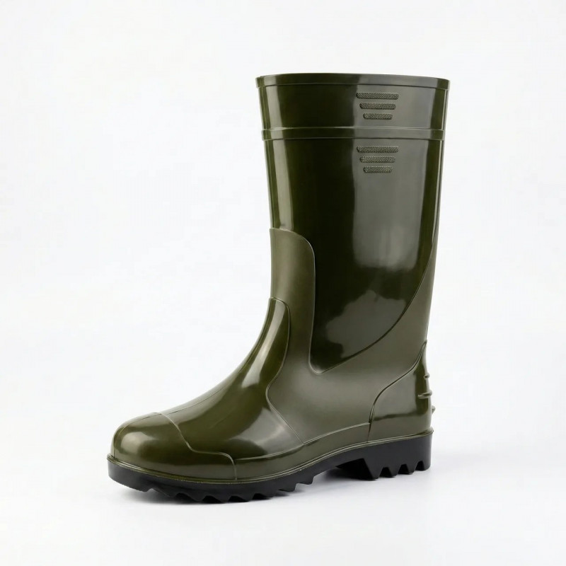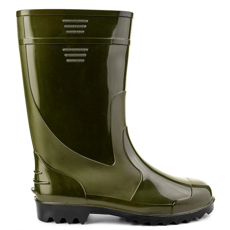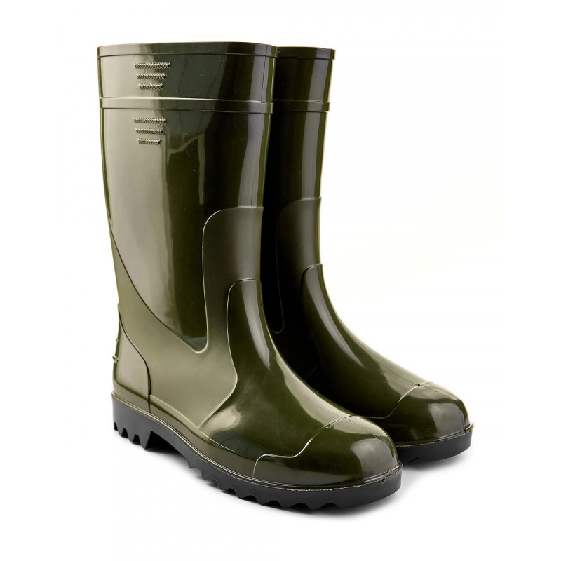Класичні гумові чоботи з ПВХ — це перевірений часом вибір для роботи та відпочинку в умовах підвищеної вологості. Якщо вам потрібне взуття, яке не боїться ні бруду, ні води, ні гострого суччя — це саме воно. Переваги матеріалу ПВХ: Міцність: Чоботи стійкі до механічних пошкоджень, подряпин та проколів. 100% Водонепроникність: Суцільнолита технологія гарантує, що ваші ноги залишаться сухими навіть якщо ви будете стояти у воді. Легкість у догляді: Гладка глянцева поверхня миттєво відмивається від глини та землі звичайною водою. Чоботи мають зручну колодку та високу халяву, що дозволяє заходити у глибокі калюжі або високу мокру траву. Підошва чорного кольору з протектором забезпечує стійкість. Ідеальний варіант для грибників, дачників та будівельників. Характеристики: Тип: Гумові чоботи (суцільнолиті). Матеріал: ПВХ (полівінілхлорид). Колір: Зелений (Olive) з чорною підошвою. Розміри: 41, 42, 43, 44, 45, 46, 47. Сезон: Весна / Літо / Осінь.