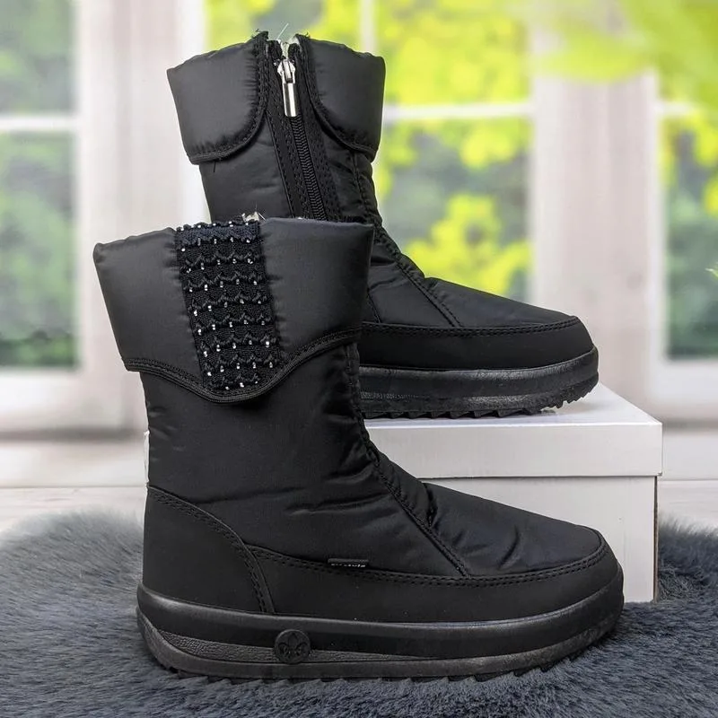 🛒 Шукаєте надійний товар? Ви можете купити Чоботи жіночі зимові чорні дутики на хутрі, Теплі високі черевики зі стразами (розміри 37-41) в нашому інтернет-магазині Shtyrman. Гарантія якості та швидка доставка по всій Україні!