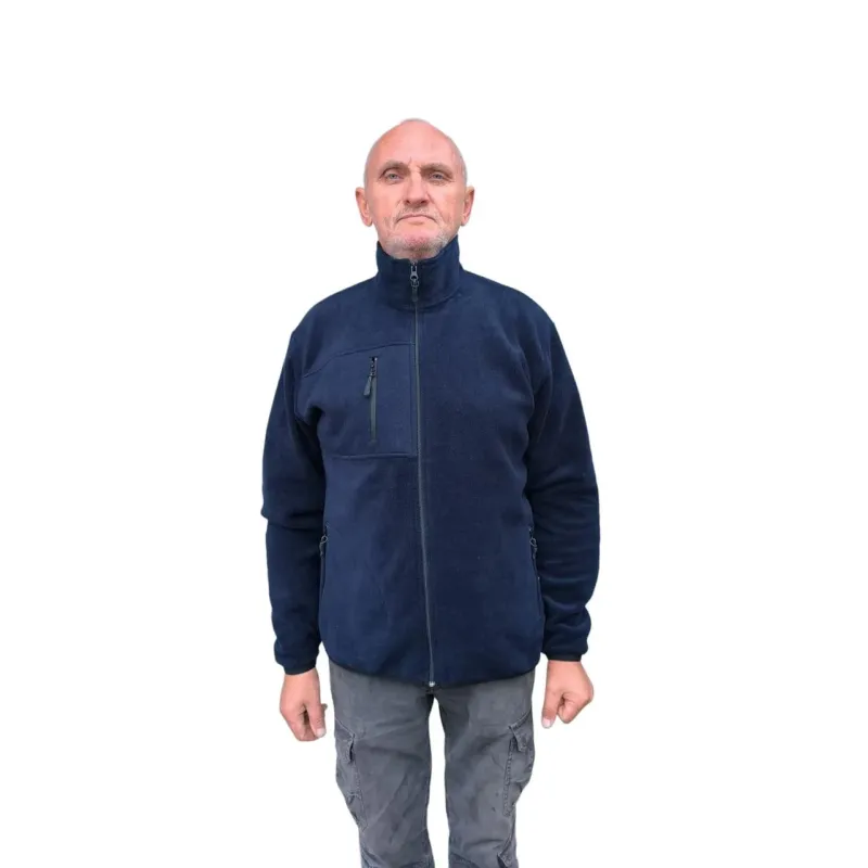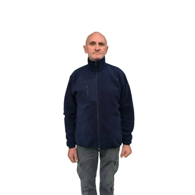 Універсальна чоловіча флісова кофта — незамінна річ у зимовому гардеробі. Вона поєднує в собі легкість, комфорт та відмінні теплоізоляційні властивості. Ця модель ідеально підходить для повсякденного носіння, роботи на вулиці, риболовлі або як утеплювач під зимову куртку. Переваги моделі: Тепло та затишок: Щільний фліс відмінно утримує тепло тіла, при цьому дозволяє шкірі "дихати" і швидко відводить вологу. Практичність: Кофта застібається на повноцінну блискавку, що дозволяє швидко регулювати температуру. Високий комір-стійка надійно захищає шию від вітру та холоду. Функціональні кишені: Модель оснащена трьома кишенями на блискавках: дві бічні для рук та одна вертикальна нагрудна кишеня для телефону або документів. Це гарантує, що ваші речі не випадуть під час активного руху. Зручний крій: Прямий фасон не сковує рухів, а рукави на гумках запобігають задуванню вітру. Характеристики: Матеріал: Фліс (100% поліестер) Щільність: Висока (тепла) Застібка: Блискавка по всій довжині Кишені: 3 шт. (на блискавках) Колір: Чорний (або Темно-синій, залежно від партії) Комір: Стійка