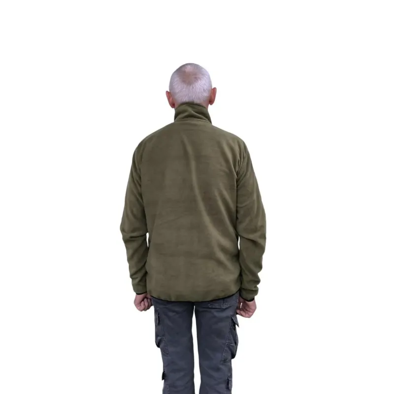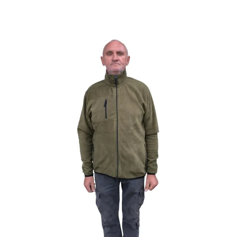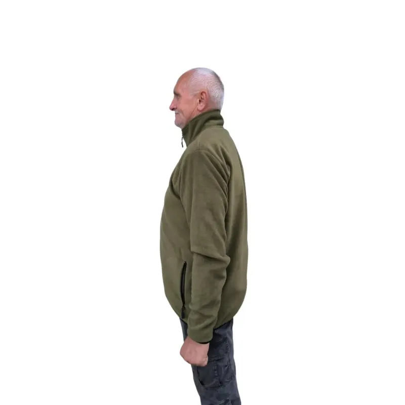 Ваш надійний захист від холоду — чоловіча флісова кофта у практичному кольорі хакі (олива). Ця модель поєднує в собі тепло, комфорт та функціональність, що робить її ідеальним вибором для військових, любителів активного відпочинку, риболовлі або просто для повсякденного носіння взимку. Переваги моделі: Фліс високої щільності: Матеріал відмінно зберігає тепло тіла, створюючи комфортний мікроклімат навіть у морозну погоду. Тканина м'яка, приємна на дотик і не кошлатиться. Практичний дизайн: Колір олива (хакі) є немарким та універсальним. Високий комір-стійка захищає шию від вітру. Функціональність: Кофта оснащена трьома кишенями на блискавках — одна нагрудна для документів чи телефону та дві бічні для рук. Зручність: Якісна центральна застібка-блискавка дозволяє швидко одягати та знімати кофту, а вільний крій не сковує рухів. Характеристики: Колір: Хакі / Олива / Темно-зелений Матеріал: Щільний фліс Застібка: Блискавка по всій довжині Кишені: 3 шт. (на блискавках) Комір: Стійка Сезон: Зима / Холодна осінь