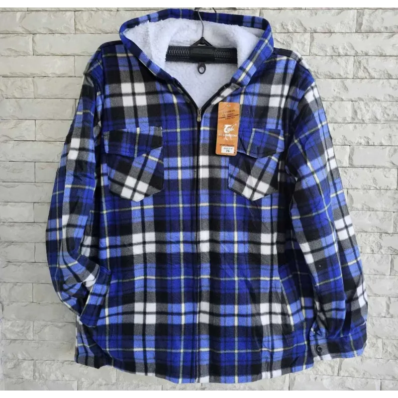 Зимова чоловіча сорочка на хутрі з капюшоном — це ідеальне поєднання стилю, комфорту та тепла. Ця модель може слугувати як повноцінна куртка для прохолодної погоди або як дуже теплий середній шар під пуховик у люті морози. Зовні сорочка виконана з щільної, приємної на дотик тканини у класичну синю клітинку, яка ніколи не виходить з моди. Зсередини (включно з капюшоном) вона утеплена густим та м'яким штучним хутром (під овчину), яке відмінно зберігає тепло. На відміну від звичайних сорочок, ця модель застібається на надійну блискавку, що робить її максимально зручною у використанні. Сорочка має дві нагрудні кишені на гудзиках та бічні кишені для рук. Капюшон захистить голову від вітру та холоду. Розмірна сітка 54-60 (Батал) розрахована на чоловіків міцної статури, забезпечуючи вільну та комфортну посадку. Характеристики: Тип: Тепла сорочка-куртка Утеплювач: Штучне хутро (по всьому виробу + капюшон) Застібка: Блискавка (змійка) Принт: Клітинка (Blue Plaid) Розміри: 54, 56, 58, 60 (Батал) Кишені: 2 нагрудні, 2 бічні Сезон: Зима / Холодна осінь / Весна.