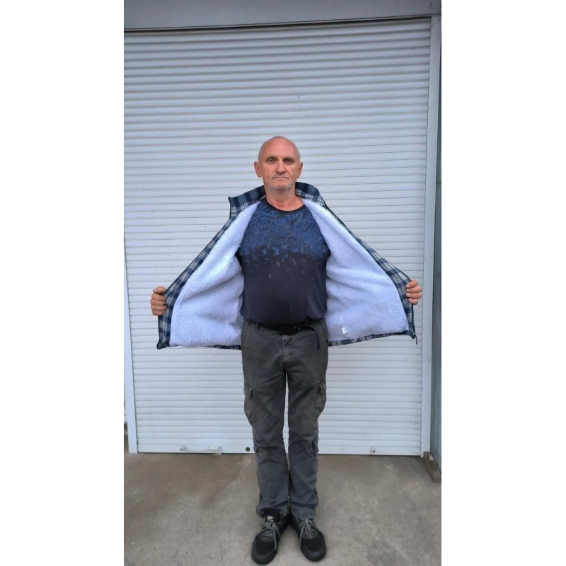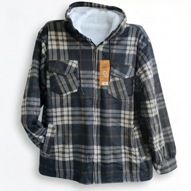 Стильна та функціональна чоловіча куртка-сорочка з капюшоном — хіт цього зимового сезону. Модель поєднує в собі класичний вигляд картатої сорочки та тепло зимової куртки. Верх виробу виконаний з щільної, приємної на дотик тканини (під байку/вовну), а внутрішня частина повністю утеплена густим білим штучним хутром (під овчину). Головна особливість моделі — теплий капюшон зі шнурками, який надійно захищає голову та шию від вітру та снігу. Куртка застібається на блискавку, має манжети на рукавах та чотири кишені: дві нагрудні з клапанами на ґдзиках та дві зручні бічні для рук. Це універсальна річ, яка пасує під джинси або спортивні штани. Ідеальний варіант для тих, хто не любить громіздкі пуховики, але хоче почуватися тепло та комфортно. Характеристики: Тип виробу: Куртка-сорочка з капюшоном Утеплювач: Штучне хутро "овчина" (корпус та капюшон) Застібка: Блискавка Кишені: 2 нагрудні, 2 бічні Колір: Чорно-сіра клітинка (як на фото) Особливості: Капюшон регулюється шнурком Сезон: Зима / Холодна осінь
