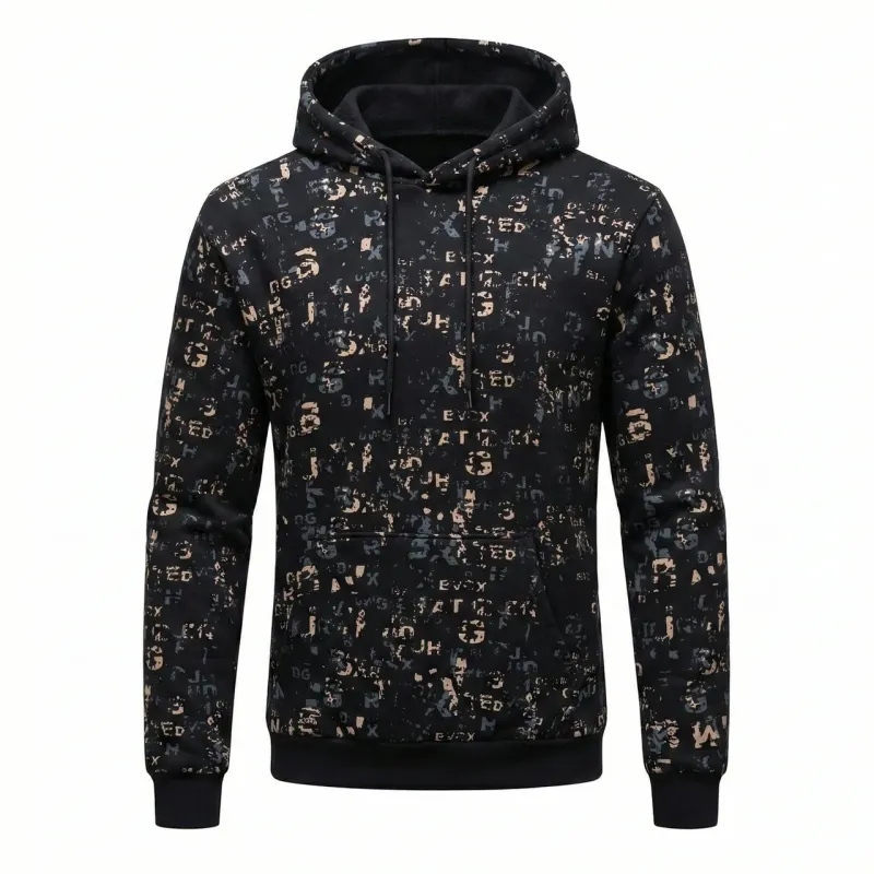 Чоловіче худі з принтом "Літери", чорне (Розміри 46-52). Стильна молодіжна толстовка з капюшоном