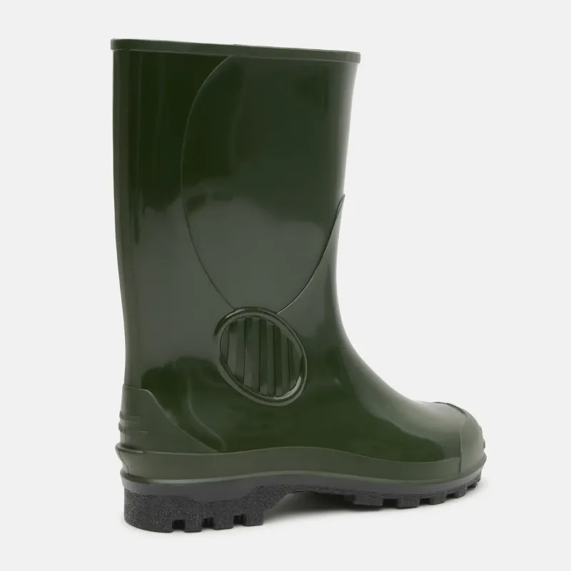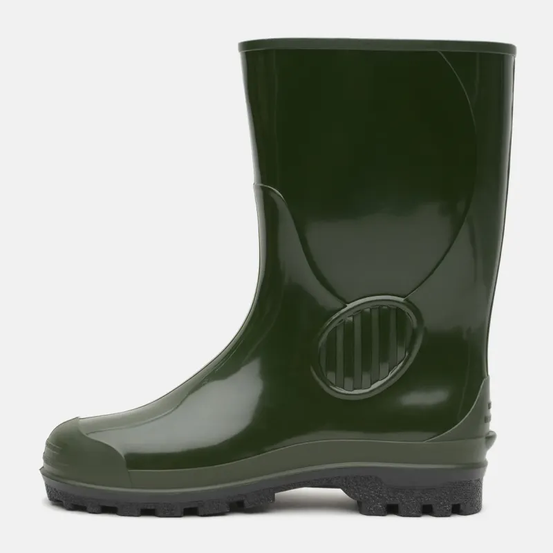 Чоловічі гумові чоботи Alisa Line зеленого кольору — це універсальне рішення для роботи на городі, рибалки та активного відпочинку на природі. Високе халявище надійно захищає ноги від води, бруду та вологи, а міцна гума витримує інтенсивні навантаження.
