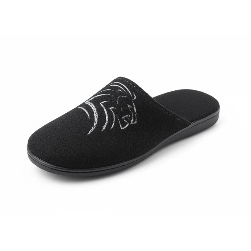 Теги: чоловічі капці, кімнатні капці чорні, закриті капці, капці з вишивкою, домашнє взуття, капці лев, тепле взуття