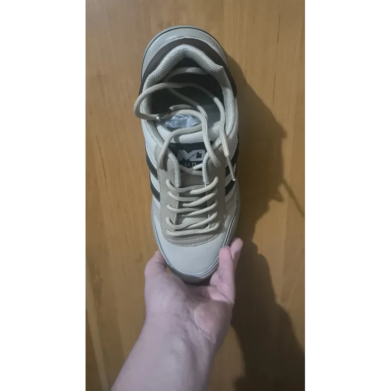 Трендові чоловічі кросівки у приємному бежевому кольорі (кава з молоком), які стануть чудовим доповненням до вашого повсякденного гардероба. Дизайн моделі виконаний у класичному спортивному стилі з акцентними коричневими смужками та вставками під замшу на носку та п'яті. Таке поєднання матеріалів та кольорів робить взуття стильним та дорогим на вигляд. Кросівки виготовлені з якісної еко-шкіри та еко-замші, що забезпечує їм міцність та легкість у догляді. Текстильна підкладка дозволяє ногам дихати, що особливо важливо у весняно-літній період. Підошва гнучка, пружна, забезпечує гарну амортизацію при ходьбі. Ця універсальна модель ідеально пасує до джинсів, шортів або спортивних штанів. Відмінний вибір для міста, навчання або вечірніх прогулянок. Характеристики: Матеріал верху: Еко-шкіра + вставки Еко-замші. Підошва: ПВХ (легка, зносостійка). Колір: Бежевий (Кремовий). Сезон: Весна / Літо / Тепла осінь. Застібка: Шнурівка. Розмірний ряд: 41-45.