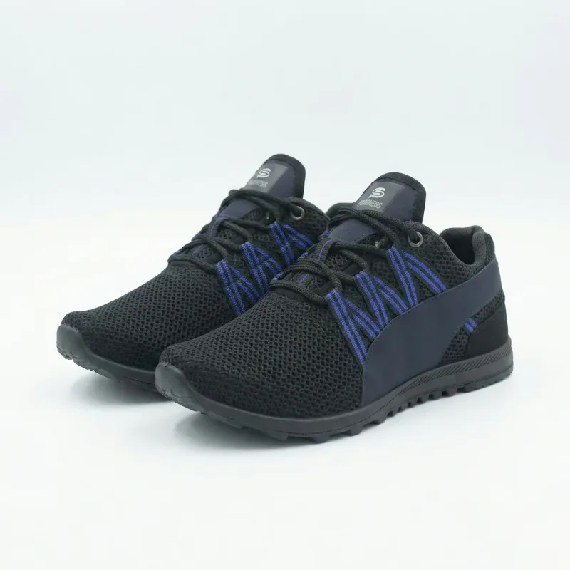 🛒 Шукаєте надійний товар? Ви можете купити Чоловічі кросівки літні сітка Progress. Чорні текстильні кеди з синіми вставками 41-45 в нашому інтернет-магазині Shtyrman. Гарантія якості та швидка доставка по всій Україні!