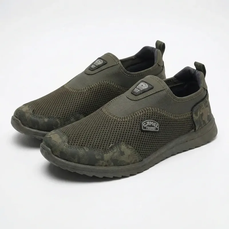 Максимальний комфорт у спеку забезпечать ці чоловічі літні сліпони. Модель виконана з міцної наскрізної сітки, яка гарантує ідеальну вентиляцію стопи. Стильний дизайн у кольорі хакі з камуфляжними вставками на носку та п'яті робить це взуття відмінним вибором для шанувальників стилю мілітарі. Головна перевага цієї моделі — відсутність шнурків. Еластичні гумові вставки дозволяють швидко взуватися та надійно фіксують мокасини на нозі (підходять на будь-який підйом). Посилені носок та задник захищають сітку від протирання та подовжують термін служби взуття. Легка та гнучка підошва не втомлює ноги навіть при тривалій ходьбі. Це універсальне взуття підійде як змінка для військових, так і для повсякденного носіння, водіння авто, поїздок на дачу чи риболовлю. Характеристики: Тип взуття: Сліпони / Мокасини / Літні туфлі Матеріал верху: Текстильна сітка (дихаюча) Матеріал підошви: ПВХ (гнучка) Колір: Хакі (Темно-зелений) + Камуфляж Сезон: Літо Особливості: Без шнурків, логотип Camel Trophy Розміри: 41-45