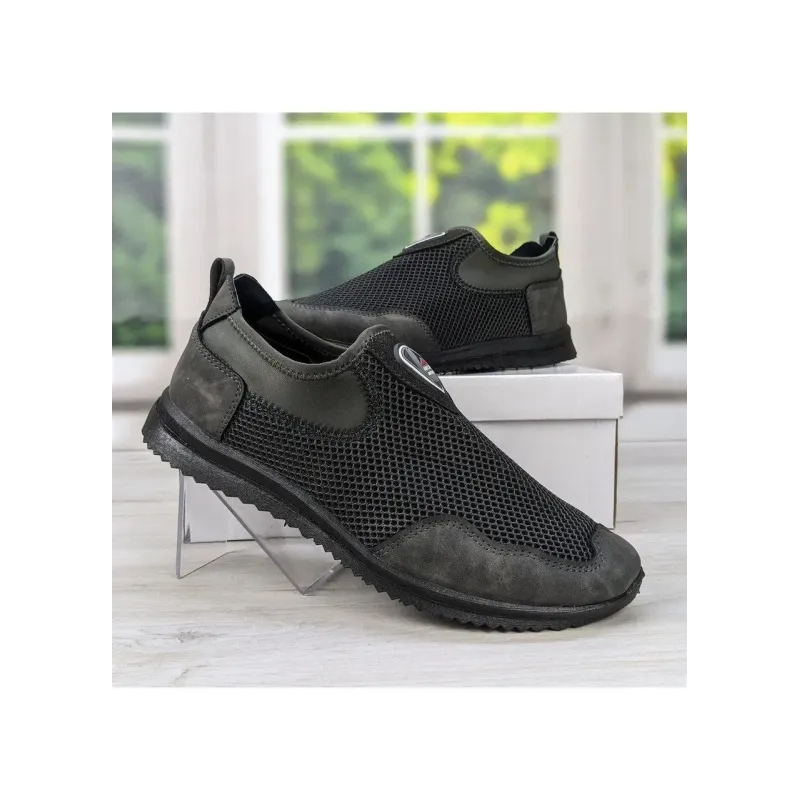 Чоловічі літні сліпони сірі сітка + нубук