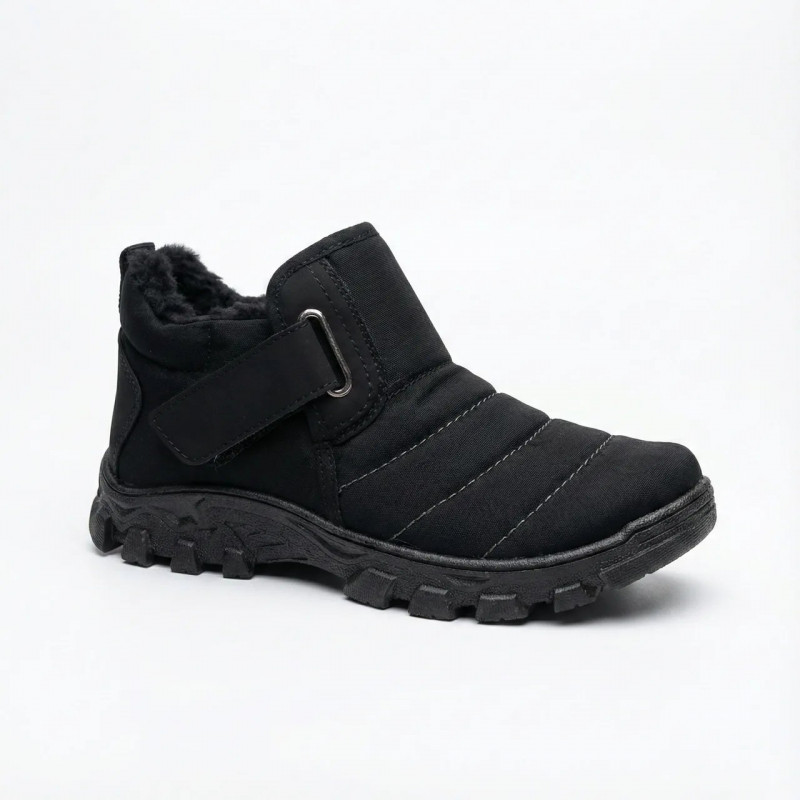 Зустрічайте холодну пору року у комфорті з нашими чоловічими зимовими черевиками-дутиками. Ця модель розроблена спеціально для тих, хто цінує тепло, практичність та зручність. Верх виготовлений з міцного водовідштовхувального текстилю, який надійно захищає від вітру, снігу та вологи, зберігаючи ноги сухими за будь-якої погоди. Всередині черевики утеплені густим штучним хутром, що забезпечує відмінну терморегуляцію навіть у сильні морози. Особливістю моделі є комбінована застібка: зручна липучка дозволяє відрегулювати взуття під будь-який підйом стопи, а бічна блискавка значно прискорює процес взування. Це ідеальний вибір для чоловіків будь-якого віку, включаючи людей похилого віку, завдяки легкості та м'якості. Підошва виконана із зносостійкого матеріалу з глибоким протектором, що гарантує надійне зчеплення зі слизькою поверхнею та запобігає ковзанню. Чорний колір робить модель універсальною та невибагливою у догляді — достатньо просто протерти поверхню вологою губкою. Характеристики: Сезон: Зима / Холодна осінь Матеріал верху: Водовідштовхувальний текстиль (плащівка) Матеріал підкладки: Штучне хутро Застібка: Липучка + Блискавка Колір: Чорний Розміри: 40-46 Підошва: Протиковзка, рифлена