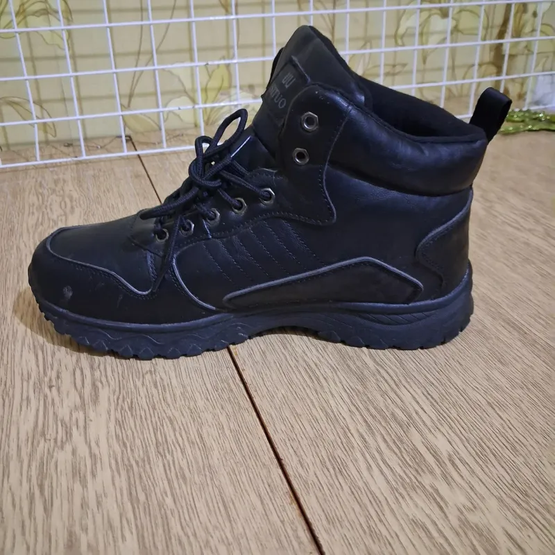 Шукаєте надійне та зручне взуття на щодень? Ці чоловічі зимові черевики — відмінний варіант для тих, хто веде активний спосіб життя. Модель виконана у спортивному стилі, тому чудово поєднується як з джинсами, так і зі спортивними штанами. Верх виготовлений з якісної еко-шкіри, яка стійка до вологи та проста у догляді. Головна перевага цієї моделі — тепло та комфорт. Всередині черевики повністю утеплені густим штучним хутром, що зігріє ноги навіть у морозні дні. Міцна шнурівка дозволяє ідеально зафіксувати взуття на нозі будь-якої повноти. Потовщена підошва з протектором забезпечує хорошу амортизацію та ізоляцію від холодної землі. Характеристики: Тип взуття: Зимові черевики / Високі кросівки Матеріал верху: Еко-шкіра (зносостійка) Матеріал підкладки: Штучне хутро Застібка: Шнурівка Колір: Чорний Сезон: Зима Розміри в наявності: 41-46