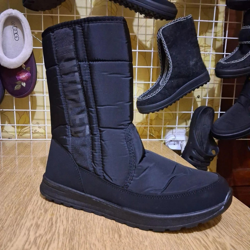 Зустрічайте зиму в комфорті з новими чоловічими дутиками серії "Untitled". Ця модель розроблена для тих, хто шукає практичне взуття на кожен день. Верх виконаний з міцної водовідштовхувальної плащової тканини (текстилю), яка не тріскається на морозі та легко чиститься від бруду. Головна перевага моделі — зручність взування завдяки надійній бічній блискавці. Вам не потрібно возитися зі шнурками. Стильний вертикальний напис "Untitled" додає взуттю сучасного вигляду. Всередині чоботи утеплені густим штучним хутром, що зберігає тепло. Висока підошва захищає від промерзання знизу та має протектор проти ковзання. Характеристики: Тип взуття: Зимові чоботи / Дутики Матеріал верху: Водовідштовхувальний текстиль (плащівка) Утеплювач: Штучне хутро Застібка: Блискавка Підошва: ПВХ (зносостійка) Колір: Чорний Особливості: Декор з написом "Untitled" Сезон: Зима Розміри в наявності: 41-45