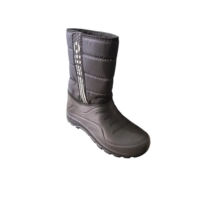 Чоловічі зимові дутики OLIMP — це найкращий захист від сльоти, снігу та морозу. Ця модель поєднує в собі практичність гумових чобіт та комфорт зимового взуття. Особливості моделі: Комбінований верх: Нижня частина (калоша) виготовлена з суцільнолитої піни (EVA), яка на 100% захищає від води та бруду. Верхня халява виконана з водовідштовхувального текстилю, що утеплений всередині. Стильний дизайн: Збоку розташований виразний логотип "OLIMP", який підкреслює спортивний характер взуття. Тепло та сухість: Завдяки високій підошві та утепленому верху, ваші ноги залишатимуться сухими та теплими навіть у найгіршу погоду. Це універсальне взуття для повсякденного носіння у селі чи місті, прогулянок з собакою, походів до магазину в снігопад або зимової риболовлі. Характеристики: Бренд: OLIMP. Тип: Дутики / Сноубутси. Сезон: Зима / Холодна осінь. Розміри: 41, 42, 43, 44, 45. Колір: Чорний. Матеріал низу: Пінка (EVA).